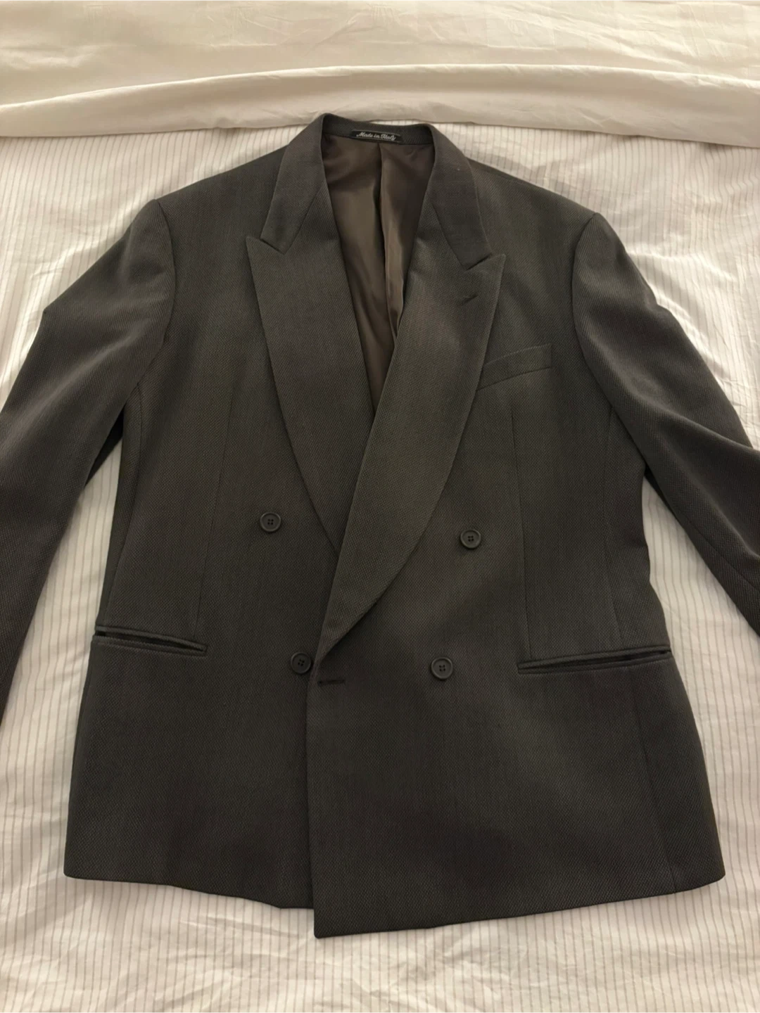 This is a Giorgio Armani Le Collezioni double-breasted blazer, made in Italy. It's a classic piece for any wardrobe.