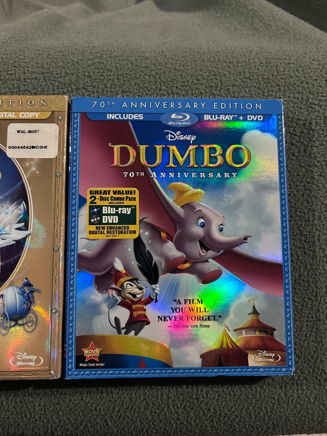 This is the 70th Anniversary Blu-ray + DVD combo pack of Disney's Dumbo. It's a great value and includes a Blu-ray and DVD disc. The film has a new enhanced digital restoration.