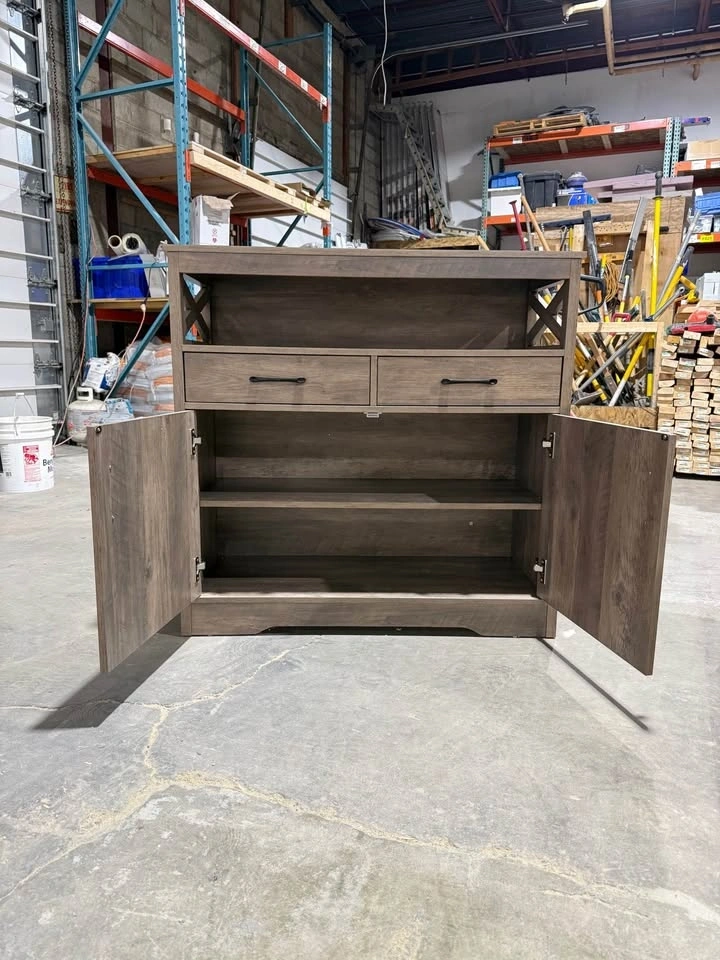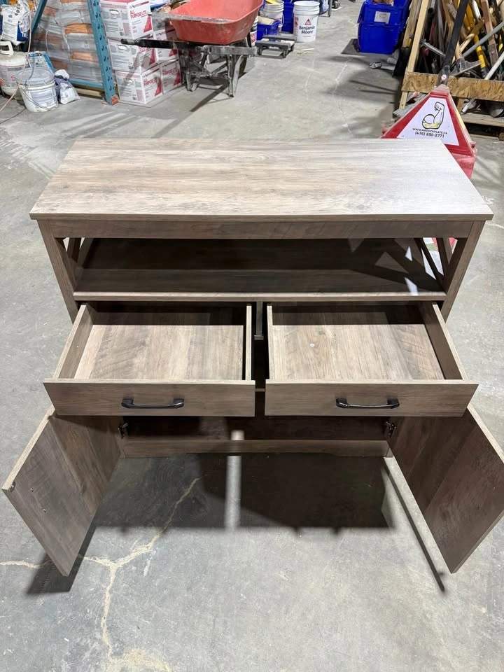 Selling two beautiful dark wood storage cabinets in excellent condition. They are sturdy, clean, and perfect for many uses around the house. Features: 2 smooth sliding drawers, large cabinet with shelf inside, open top shelf for storage or decor, modern black handles, strong and well built, nice dark wood finish that matches most homes. Price: $400 each or $750 for both.