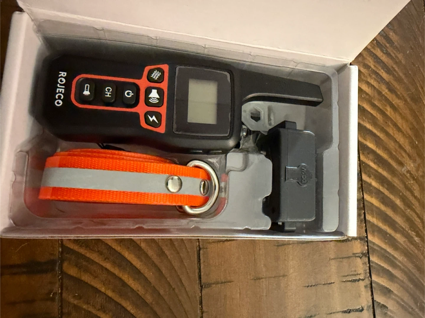 This ROJECO dog training collar has a range of 1000m and is waterproof IPX7. It's rechargeable with super energy saving capabilities. Comes with original packaging and user guide.