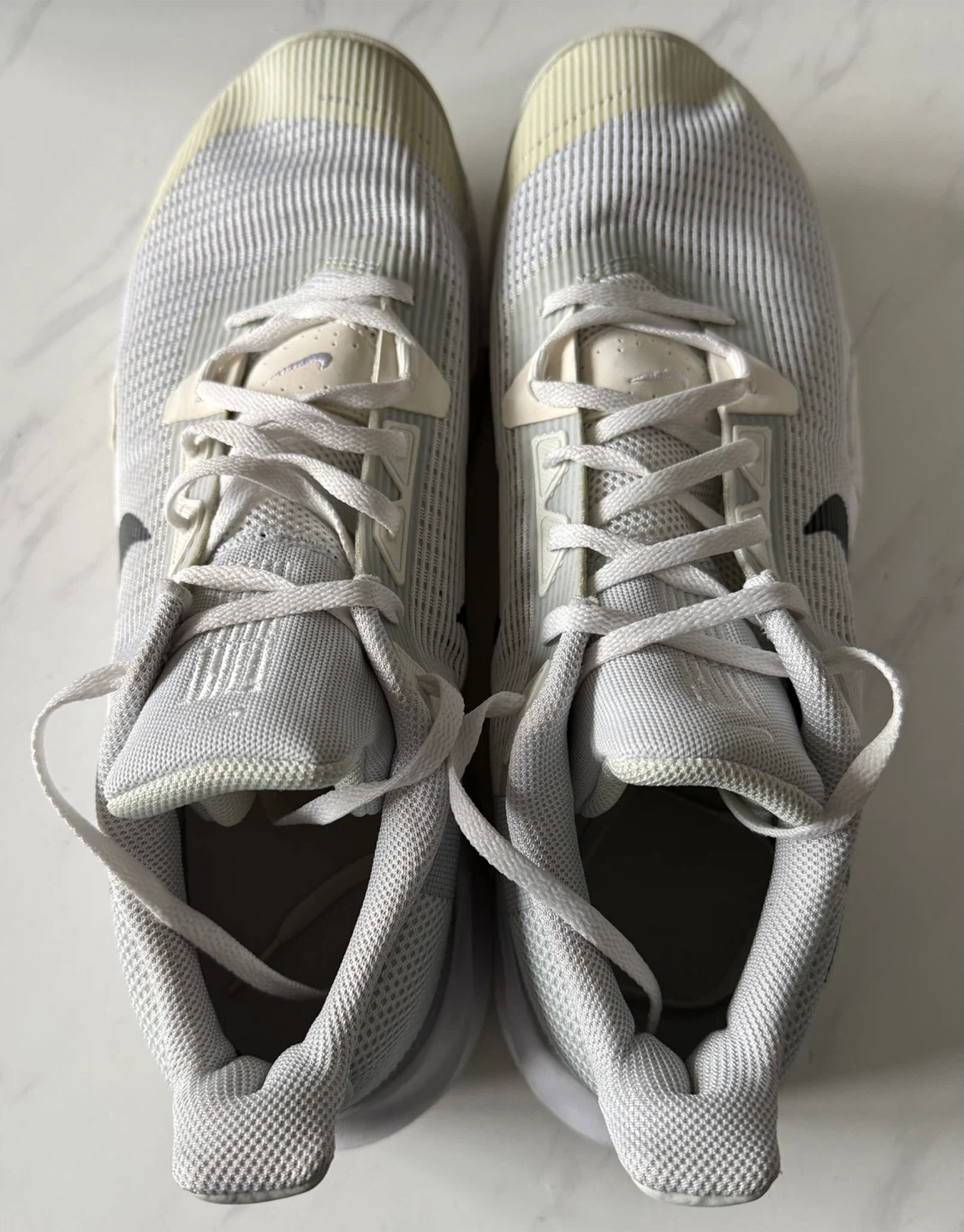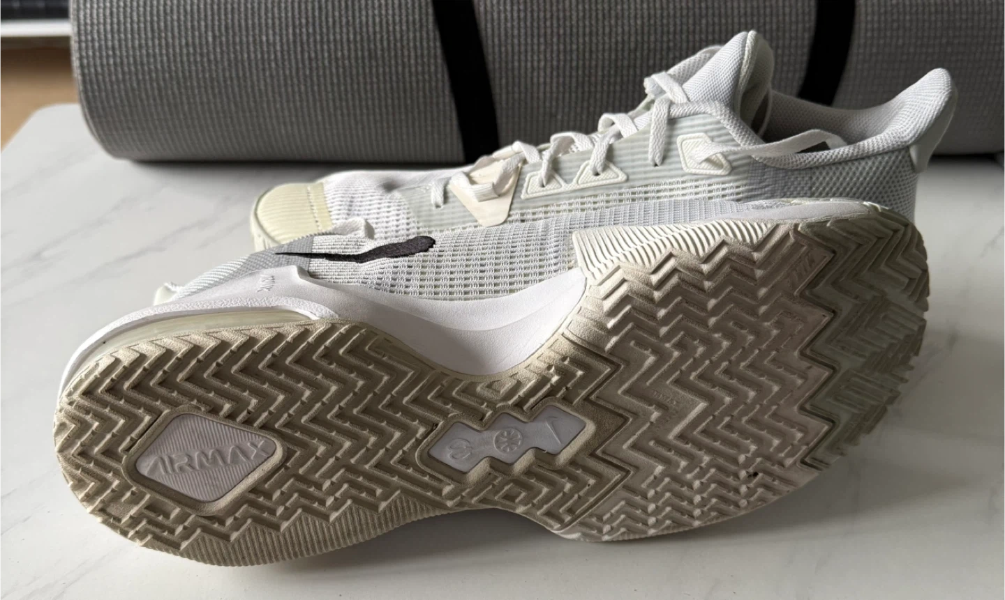 These Nike Air Max Impact 3 basketball shoes are designed for comfort and support. They feature a breathable mesh upper and a visible Air Max unit in the heel. The durable rubber outsole provides excellent traction on the court. White and grey colorway with black Swoosh.