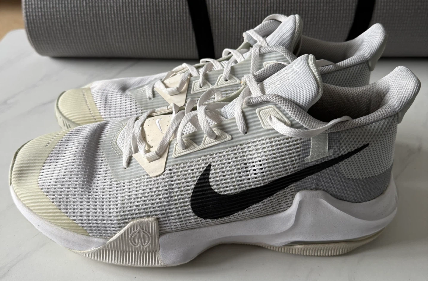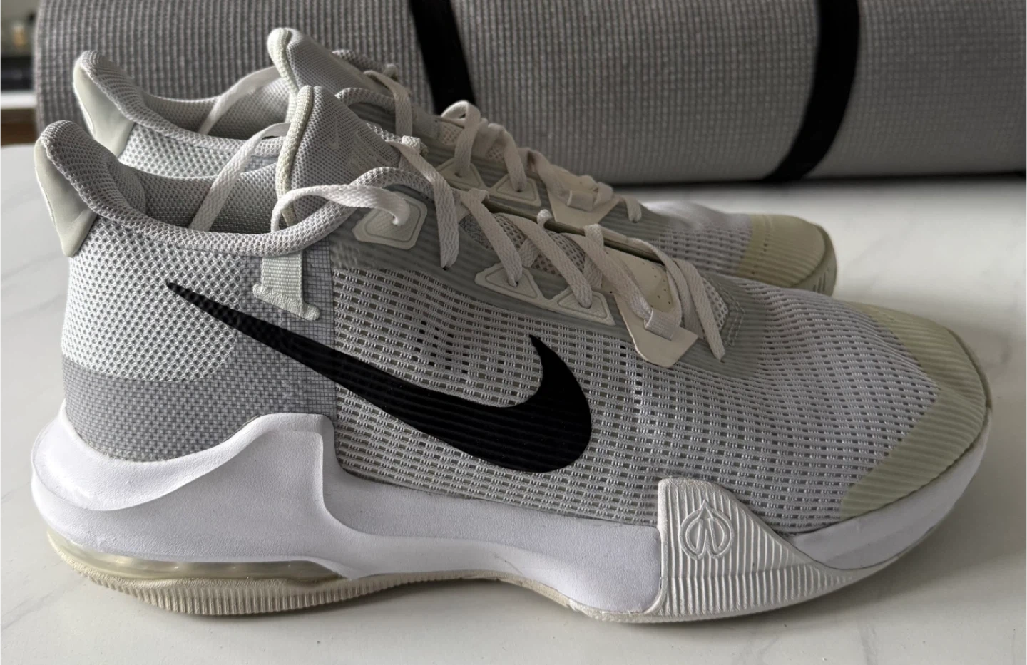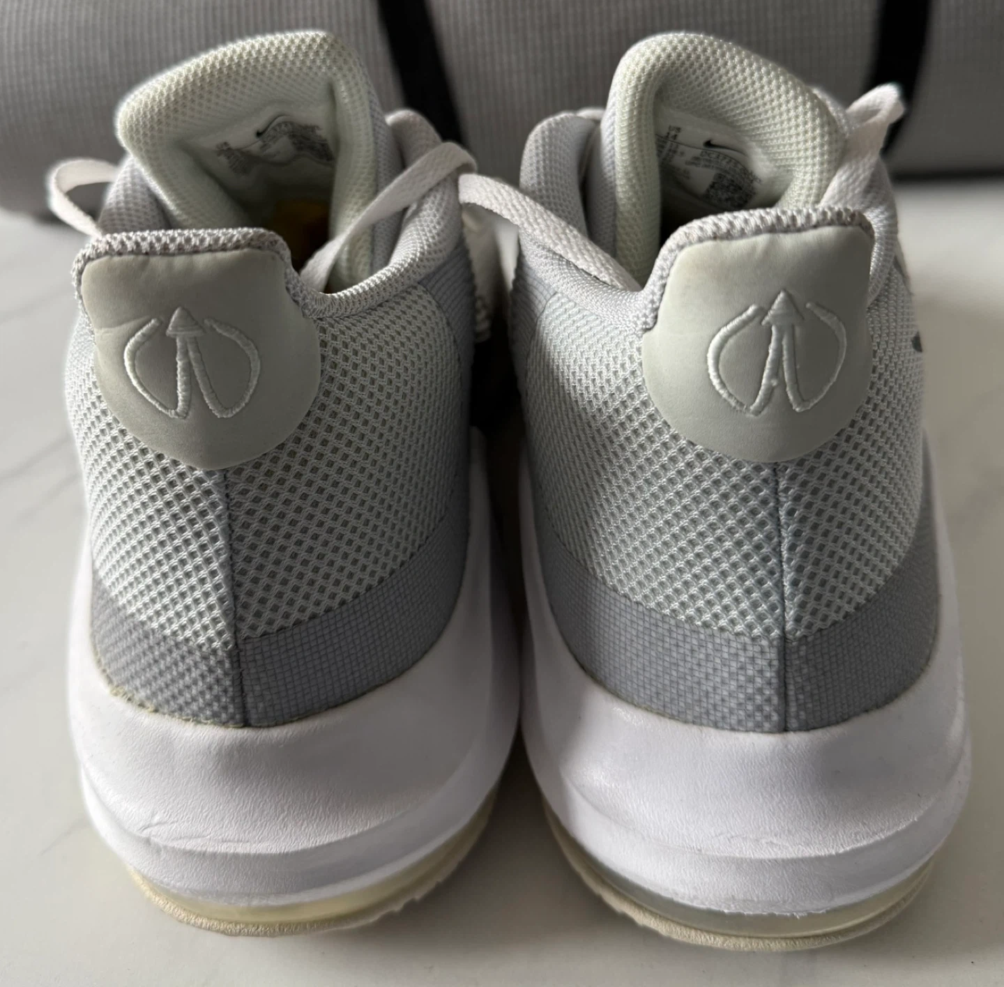 These Nike Air Max Impact 3 basketball shoes are designed for comfort and support. They feature a breathable mesh upper and a visible Air Max unit in the heel. The durable rubber outsole provides excellent traction on the court. White and grey colorway with black Swoosh.