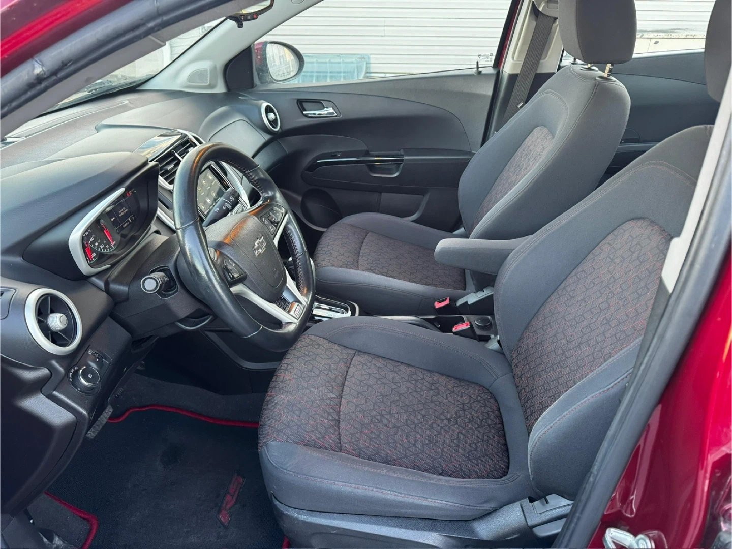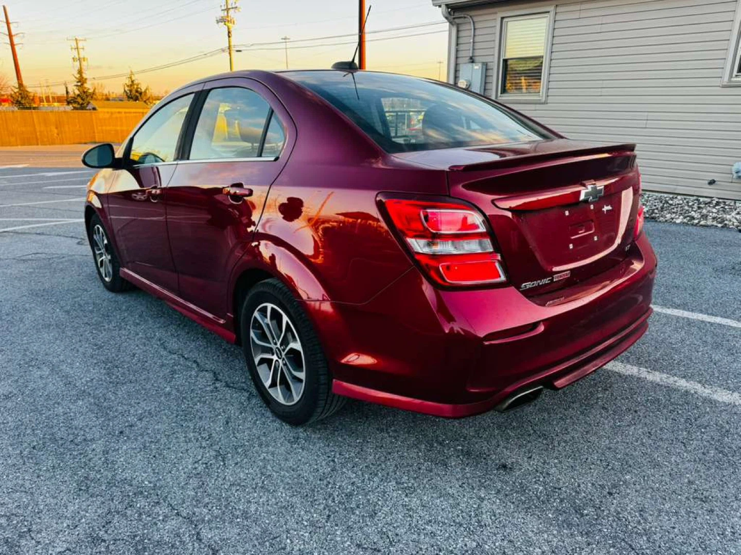 Selling a burgundy Chevrolet Sonic LT sedan. It appears to be in good condition and ready for a new owner!