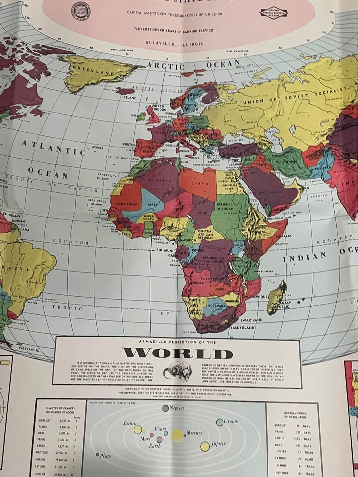 1967 World Map-Very Detailed-28”x24”
