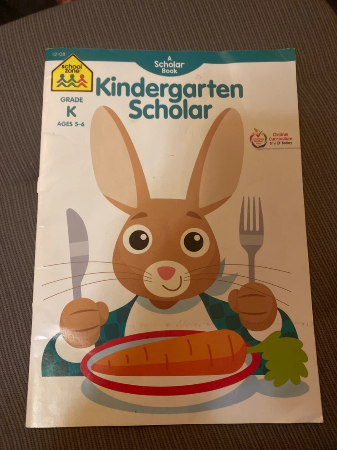 This School Zone Kindergarten Scholar workbook is designed for ages 5-6. It's a Scholar Book with an online curriculum option. It covers Grade K learning material.