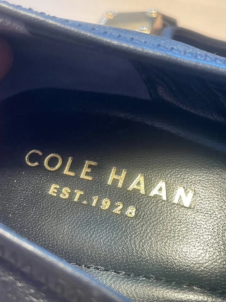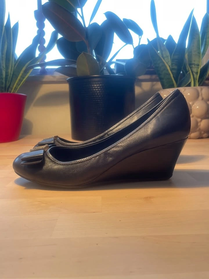 Black leather Cole Haan Tali Grand Bow Wedge pumps, size US 10
