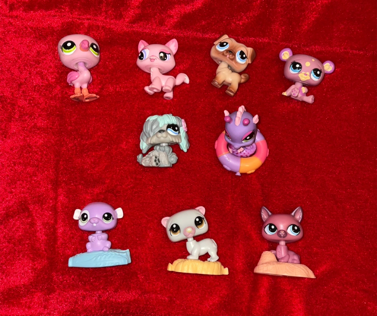 Selling a bundle of 6 Littlest Pet Shop figures and 3 bonus figures on stands. They're in great shape and ready for a new home. Perfect for collectors or kids who love these cute little pets