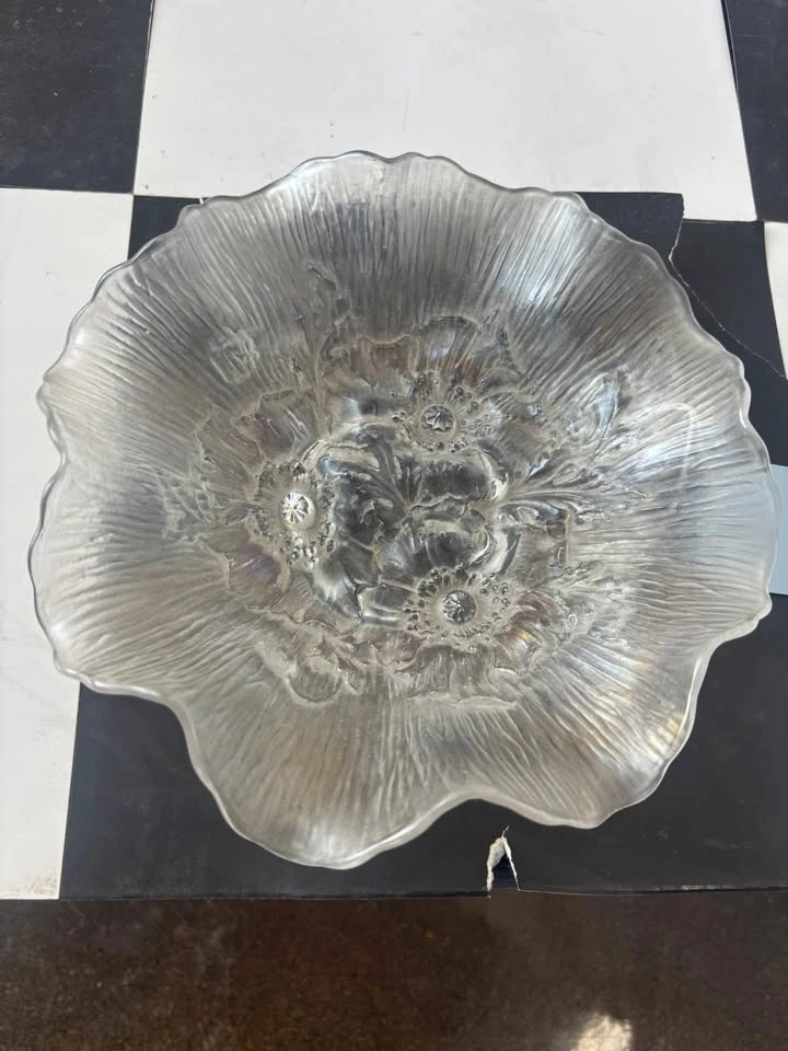 Vintage Northwood Carnival glass ‘Poppy Show’ ruffled bowl. Highly sought after piece in collectable white colour. Mint condition – no chips. 9” (23cm) x 3” (7.5cm). Feel free to message if you have any questions!