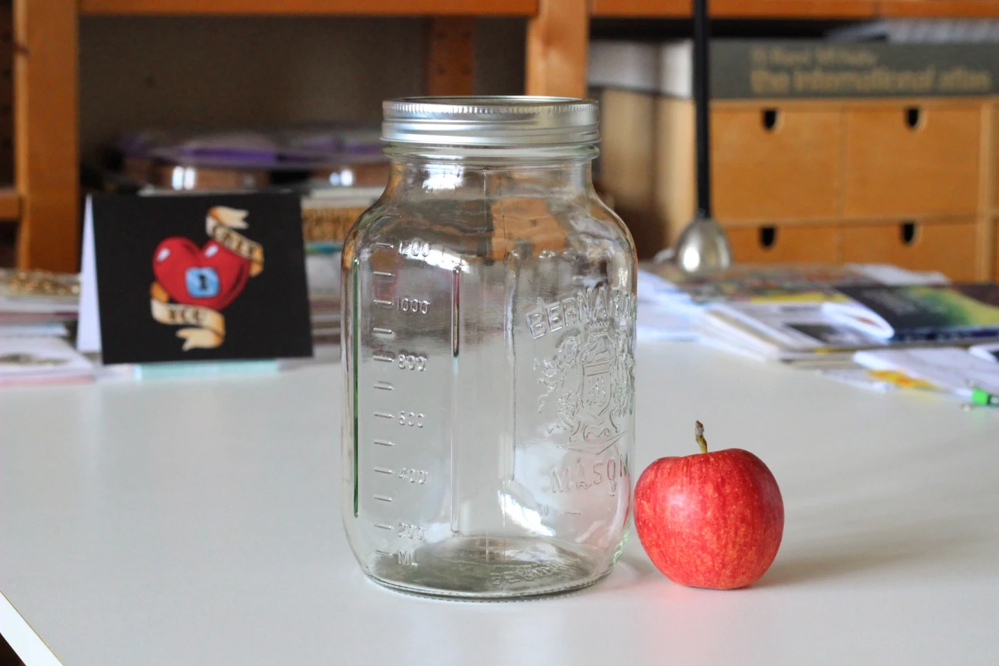 A Vintage 1.5 L Wide-Mouth Bernardin Mason jar.