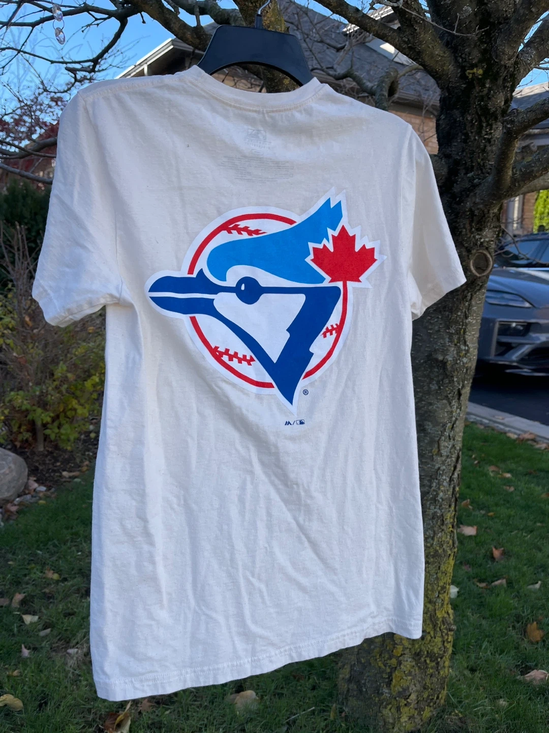 Toronto Blue Jays T-shirt in size small. The shirt is white with the Blue Jays logo on the front and back. It's in great condition and perfect for any Jays fan!