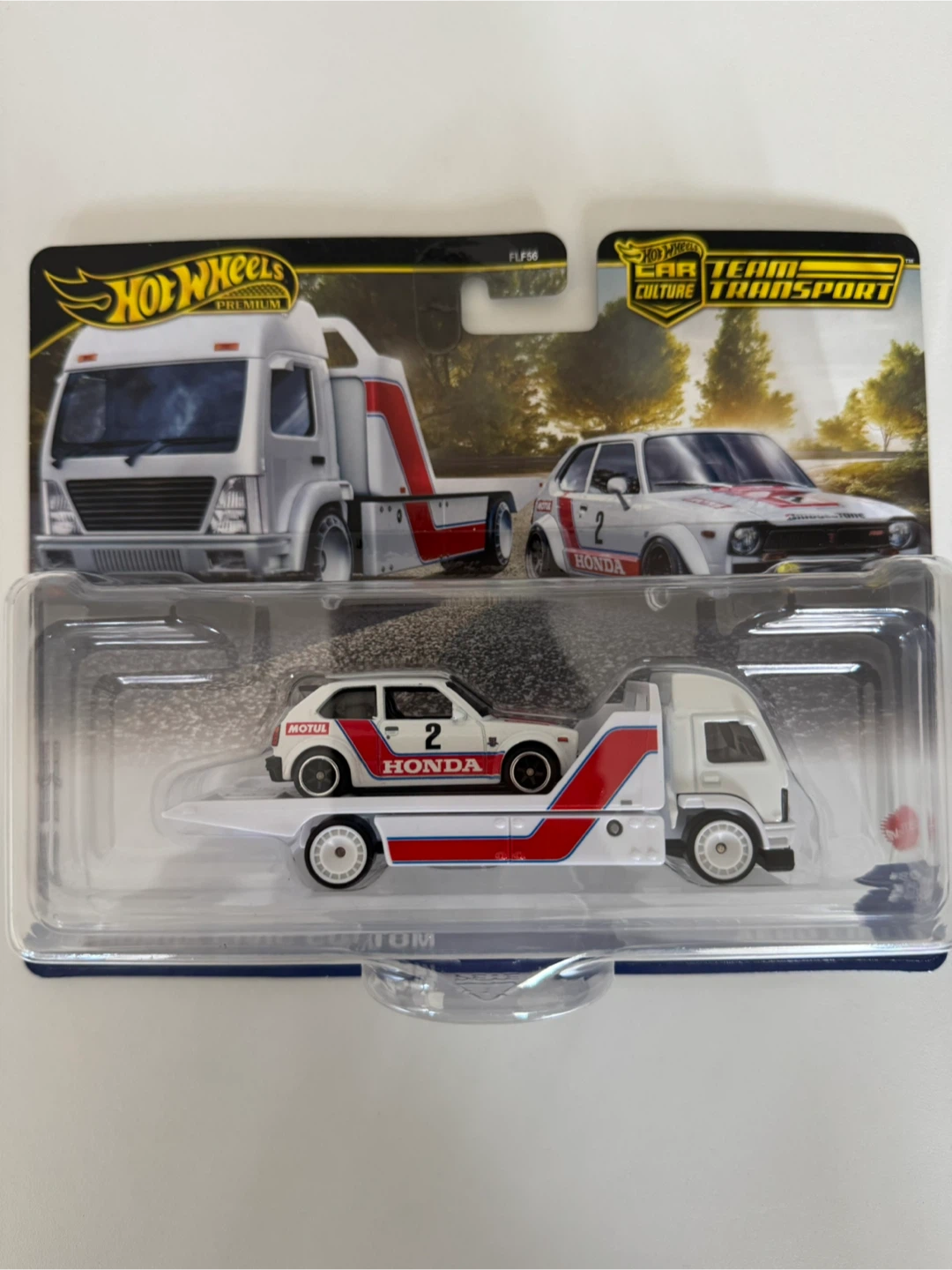 Selling brand new Hot Wheels Premium Team Transport featuring the '73 Honda Civic Custom! It's part of the Car Culture series. Perfect for collectors or anyone who loves cool toy cars.
