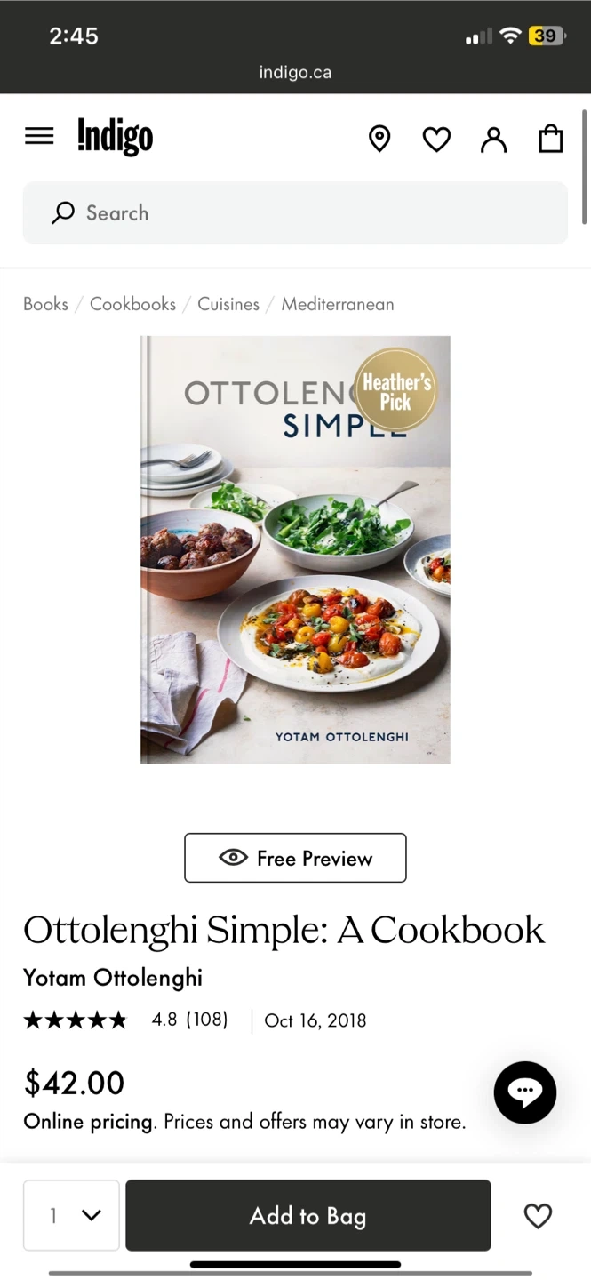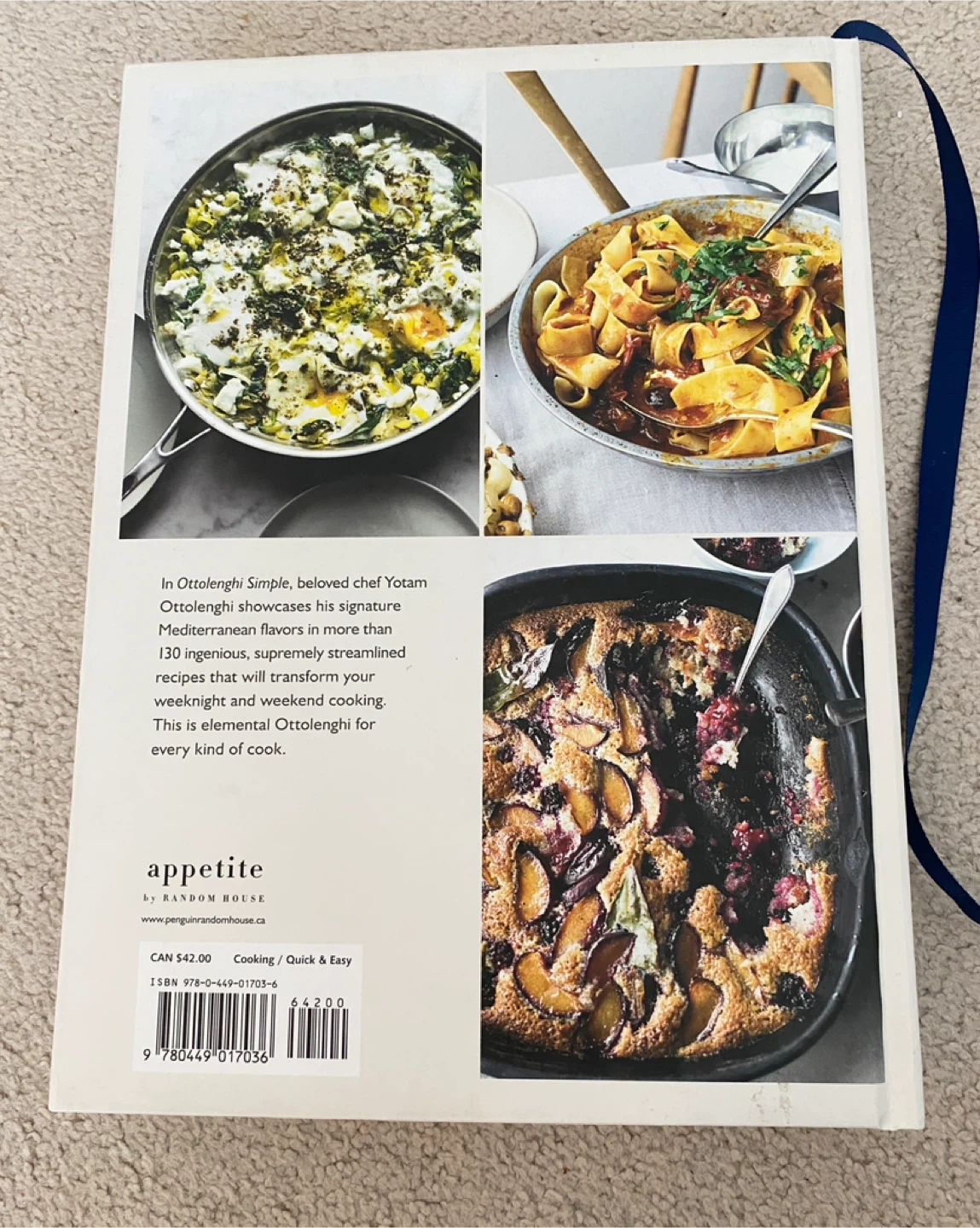 Never used Ottolenghi Simple Cookbook - gorgeous full color photographs and 2 page spreads. Retails for $42. Mediterranean inspired recipes.