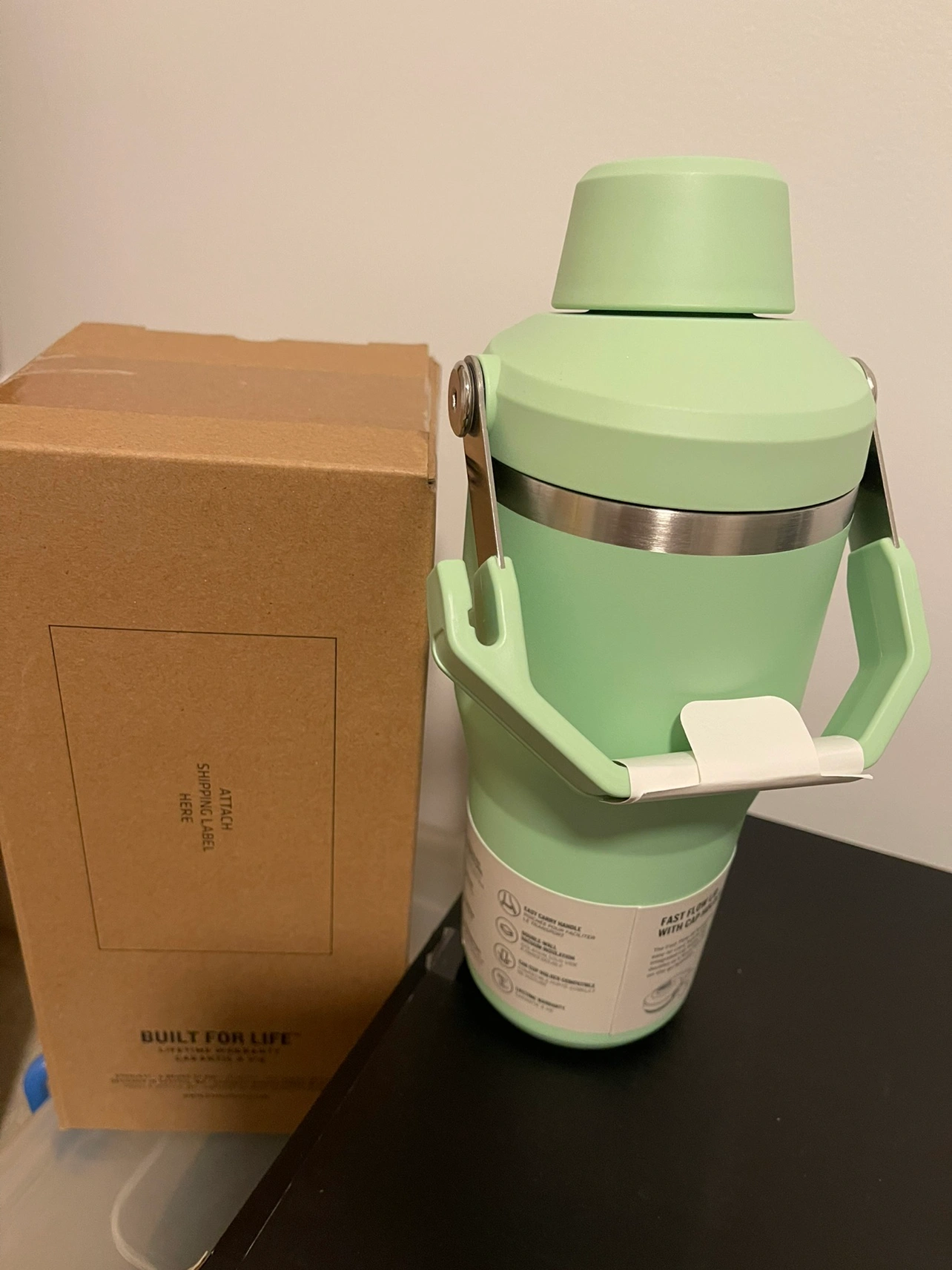 Selling a Stanley IceFlow Fast Flow Tumbler in a lovely light green colour! It holds 20 oz / 590 mL, perfect for staying hydrated. Comes with the original box!