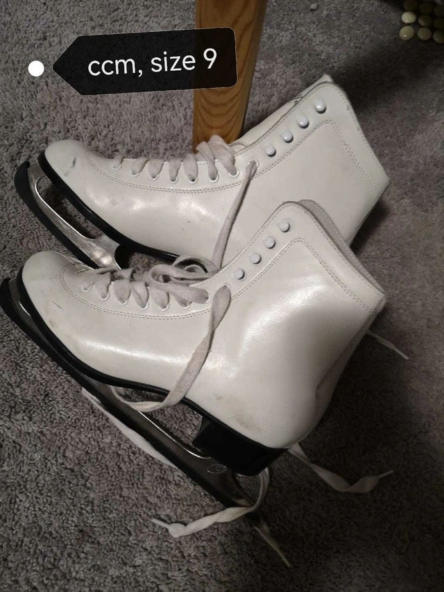 These are CCM figure skates in a women's size 9, perfect for recreational skating. These skates are used and show signs of wear. They've been well-loved and are ready for more time on the ice! If the ad is still up, the item is available! pu ranchlands nw or near Chinook station