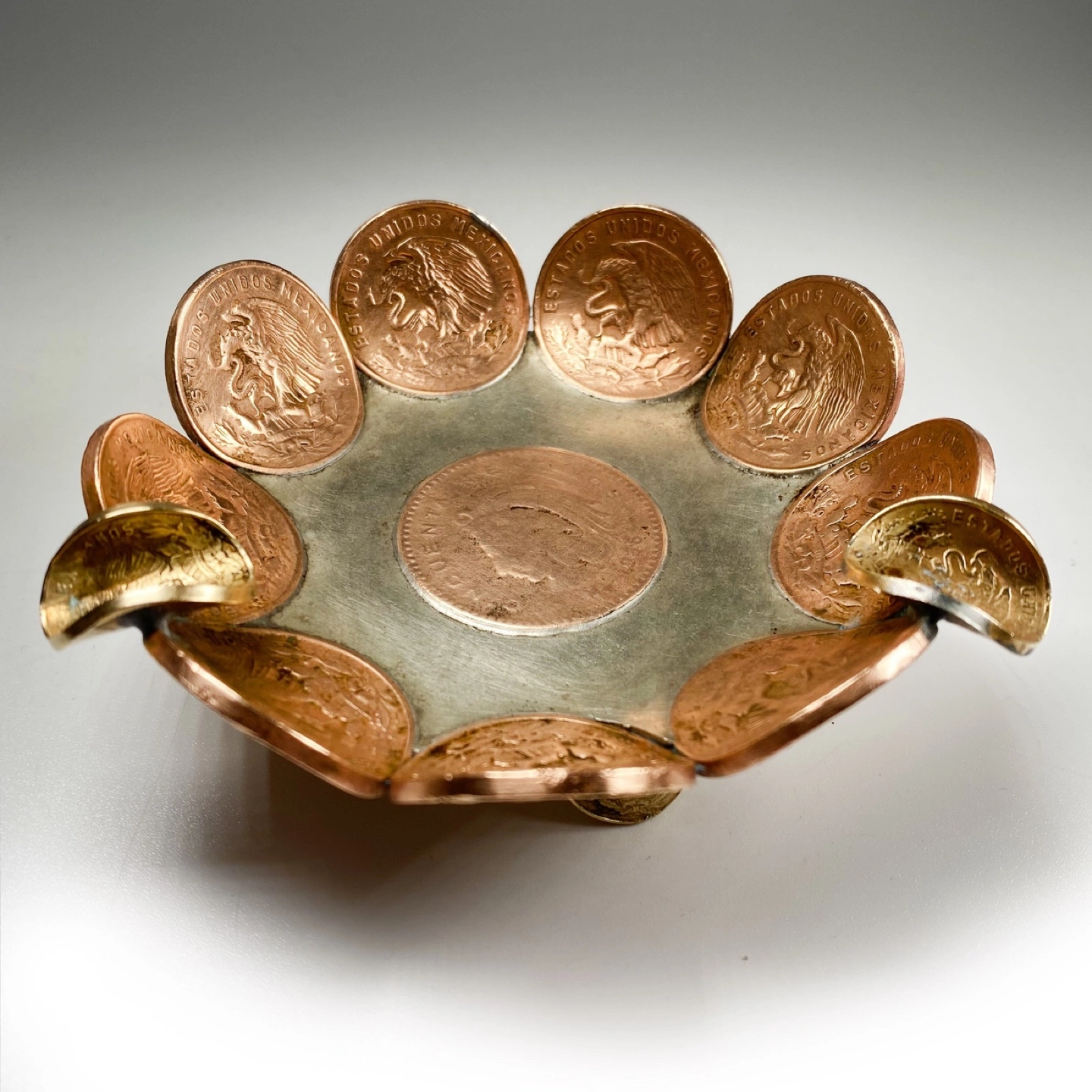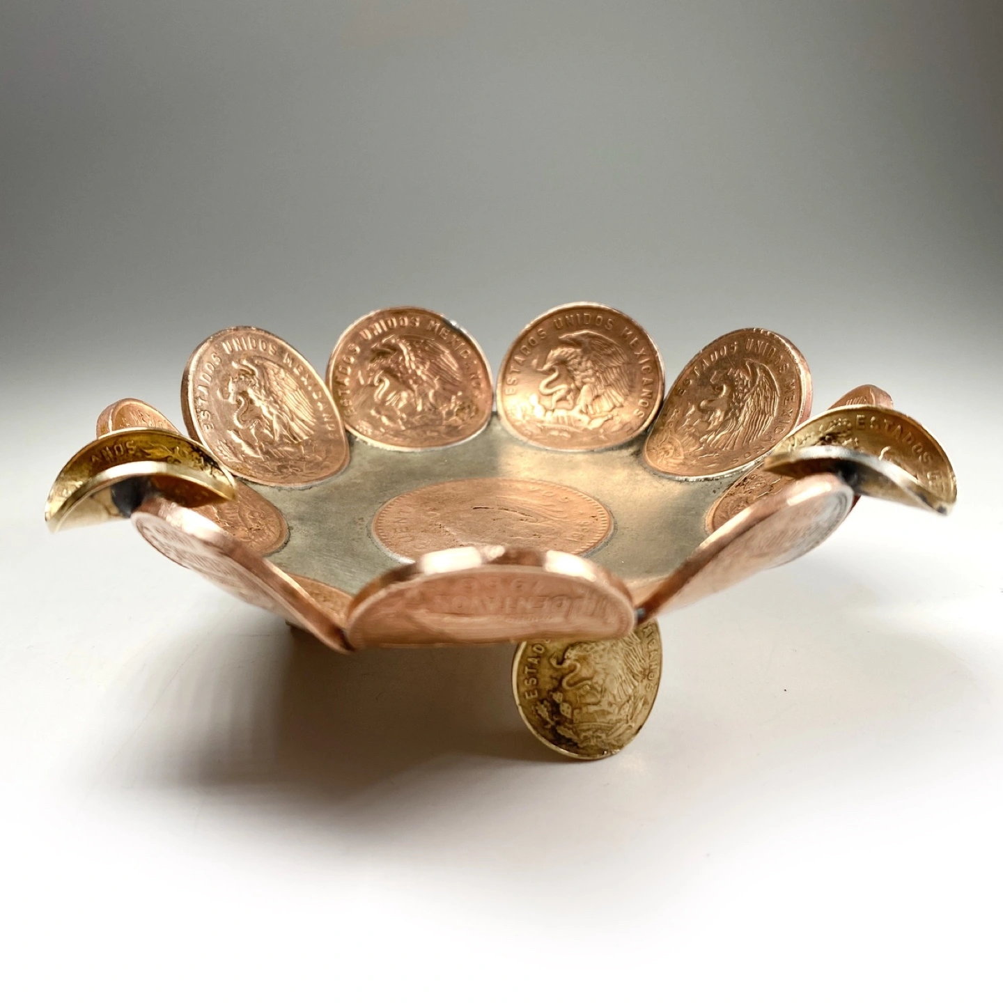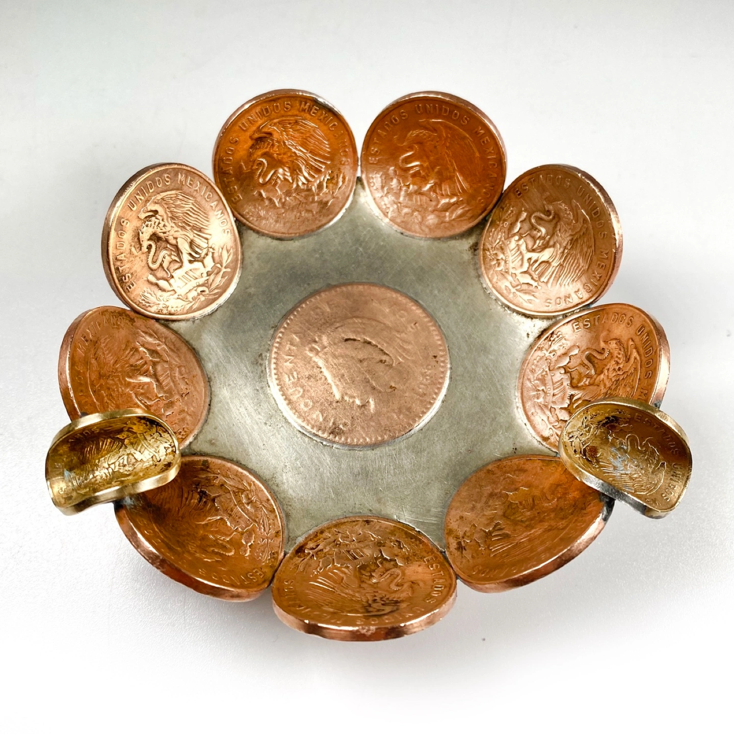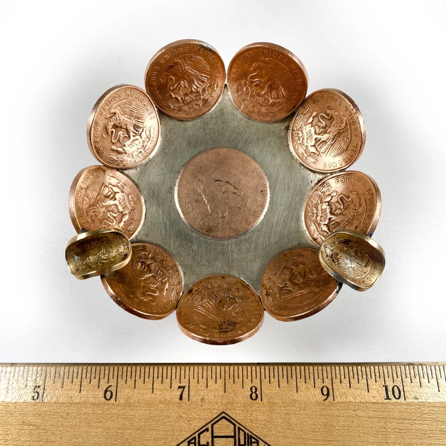 Vintage 1960โs Mexican coin souvenir ashtray.