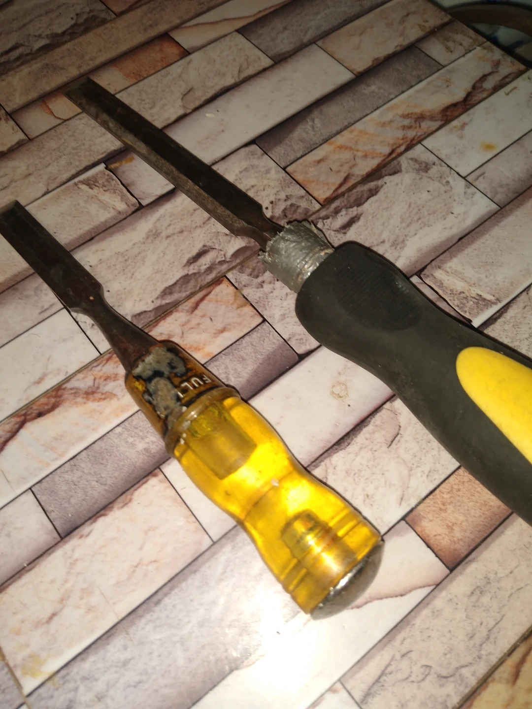 This is a pair of two wood chisels in perfect condition they've never really been used much at all. They are super sharp and go through wood like butter. Really nice tools to have anybody would love them
