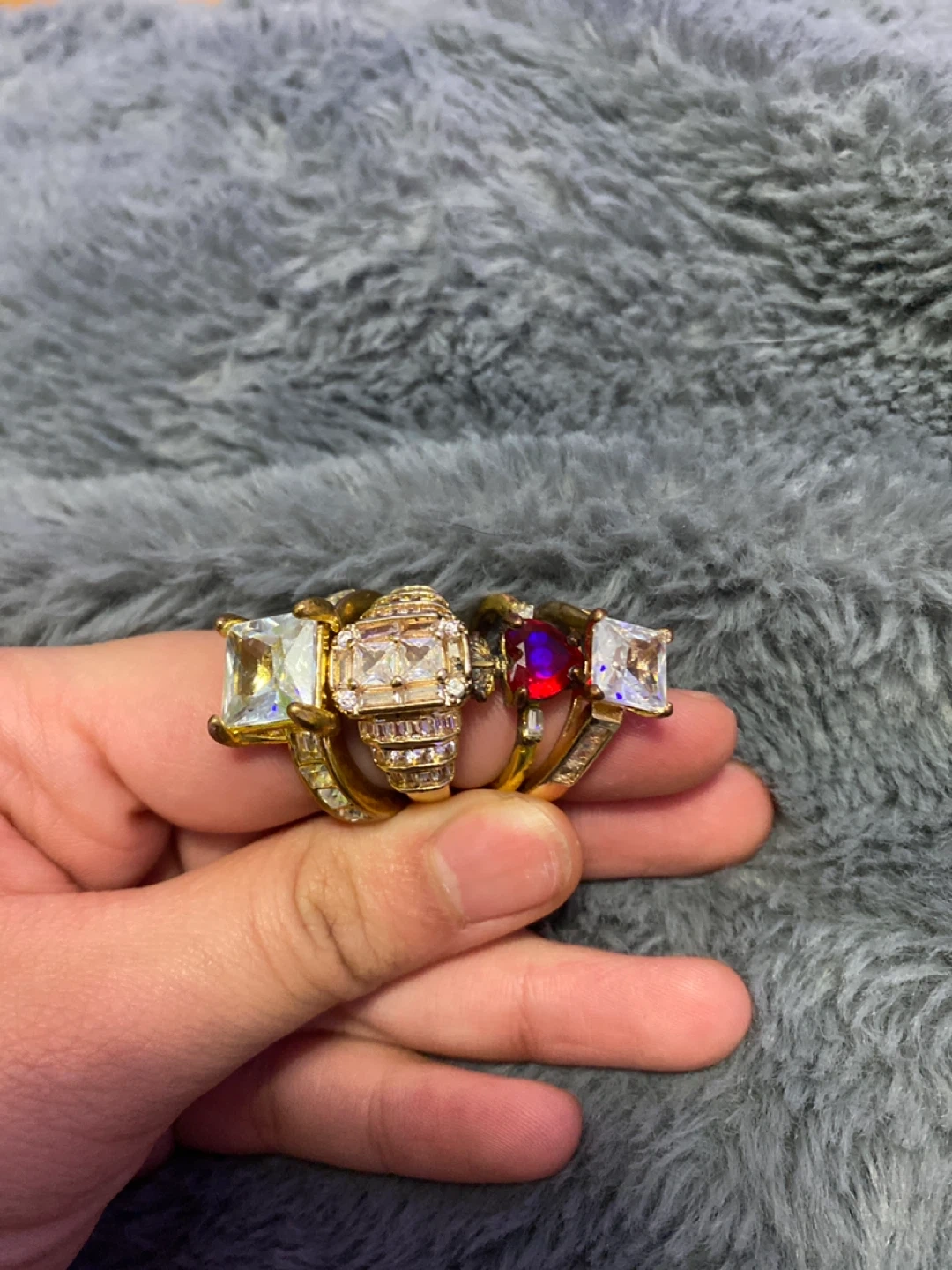 Gold-tone ring with square-cut gemstone π