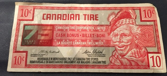 Canadian Tire 10 cent bill from the 75th Anniversary series. I know some people are hardcore collectors of these - I’m open to offers! Thanks and please see my other ads!
