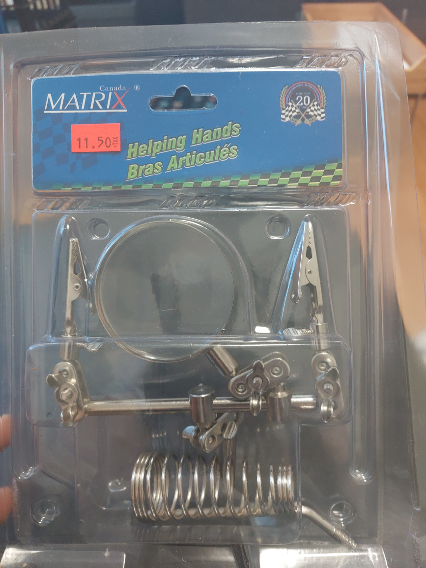 Brand new never opened or used. Canada Matrix brand. Table top "third hand" with two clamps and magnifying glass.