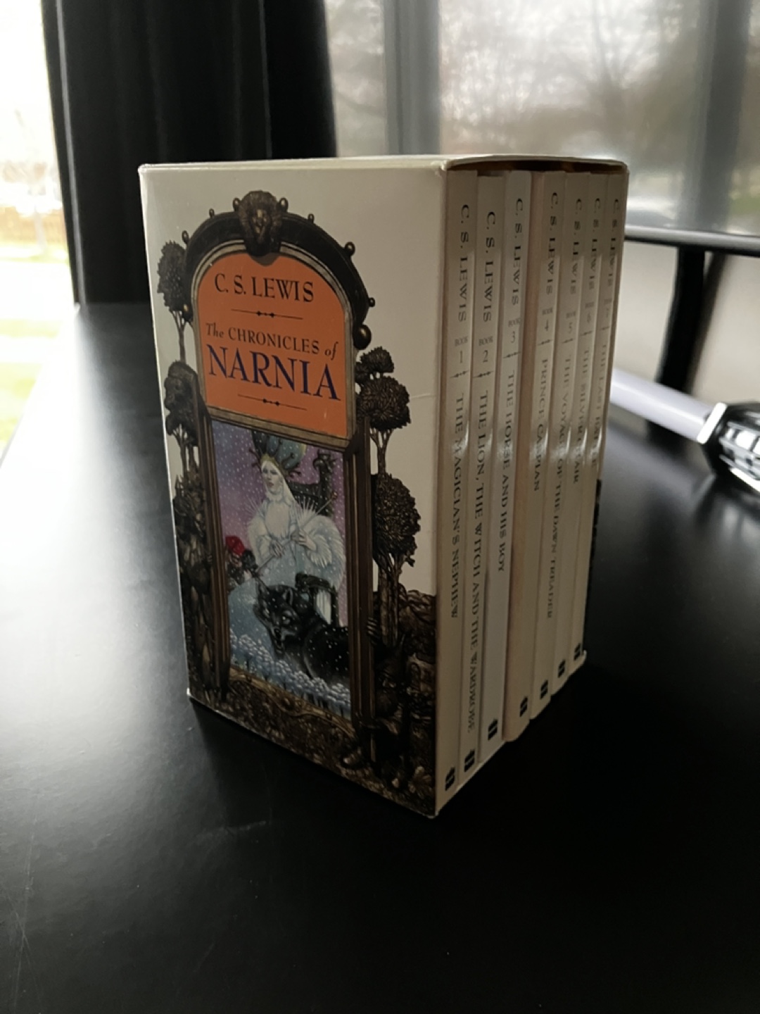Complete seven-book boxed set. Includes The Lion, the Witch and the Wardrobe, Prince Caspian, The Voyage of the Dawn Treader, The Silver Chair, The Horse and His Boy, The Magician's Nephew, and The Last Battle. Vintage collectible.