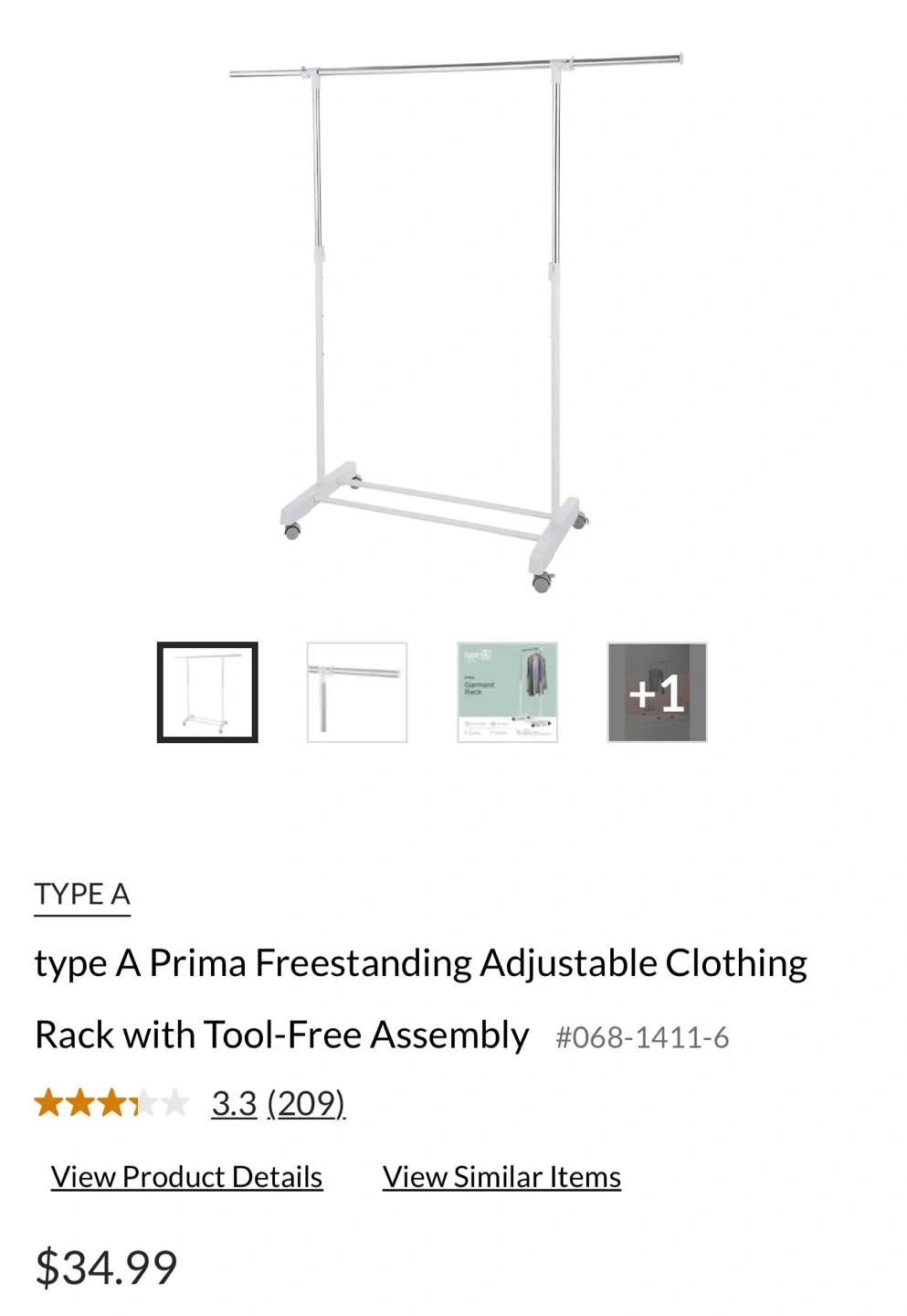 OPEN BOX Type A Prima Freestanding Adjustable Clothing Rack