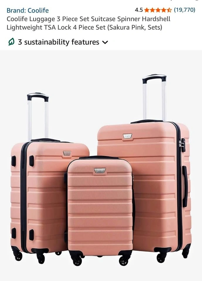 New in Box Coolife 3-Piece Luggage Set - Sakura Pink