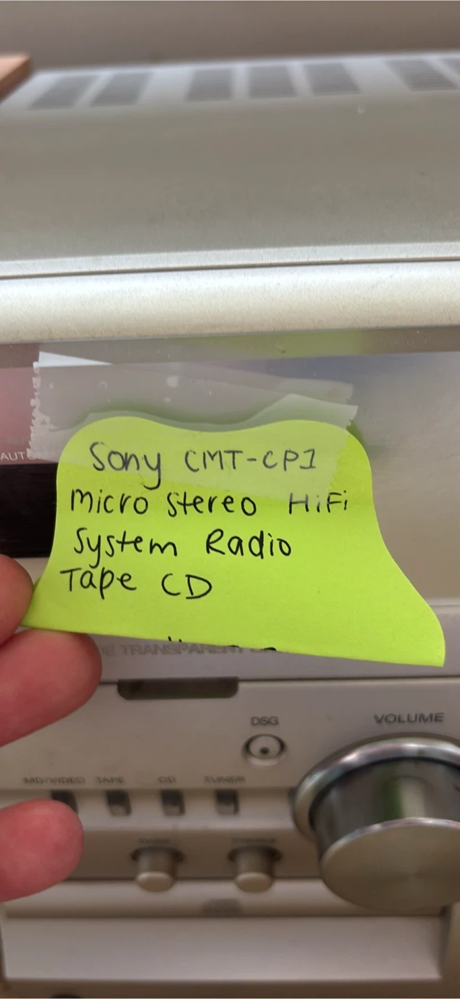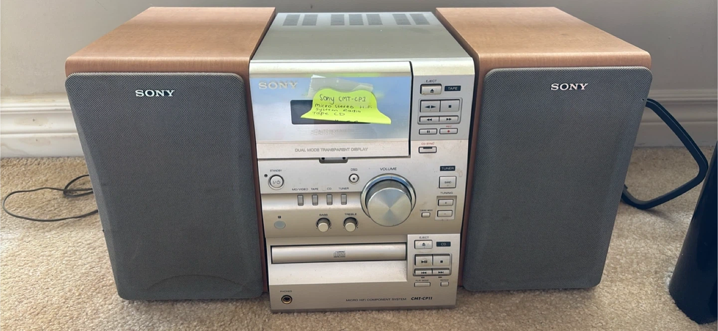 Sony CMT-CP1 micro hi-fi stereo system. Plays radio, tape, and CD. Includes original speakers.