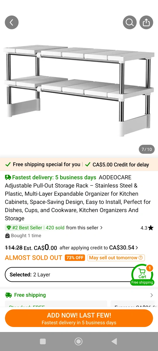 Brand New AODEOCARE 2-Tier Expandable Kitchen Rack with box