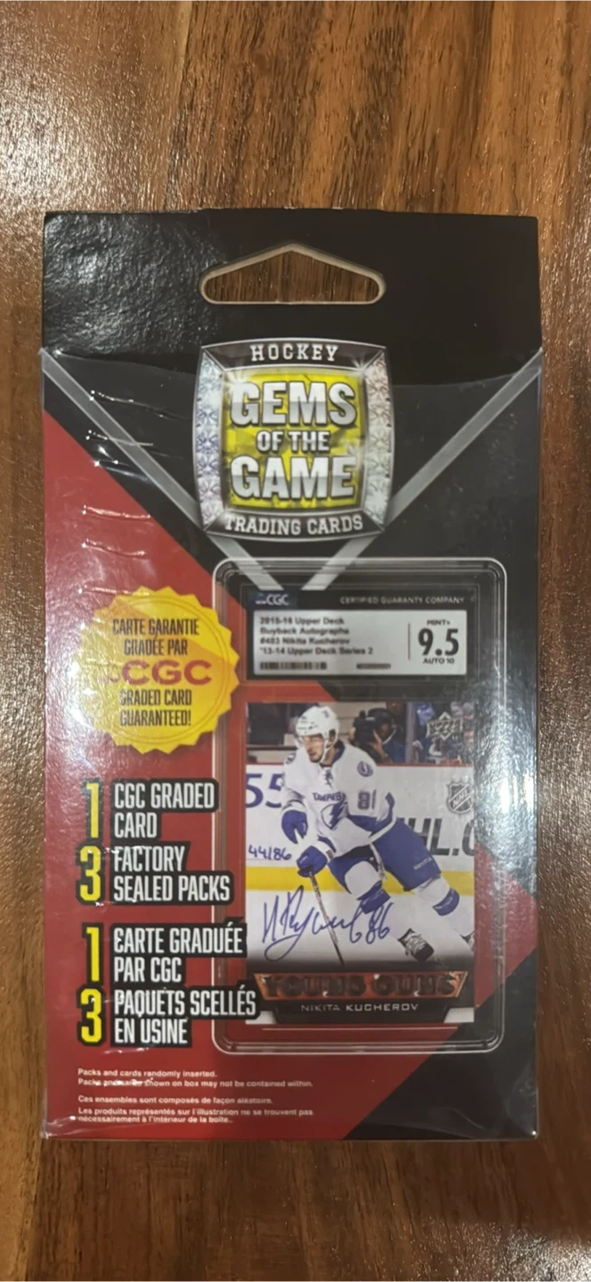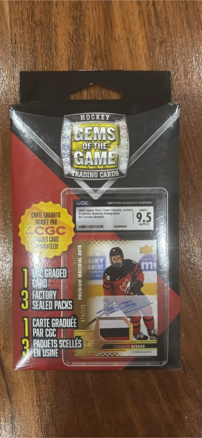 This set includes 1 CGC graded card and 3 factory sealed packs. It features premium material auto cards.