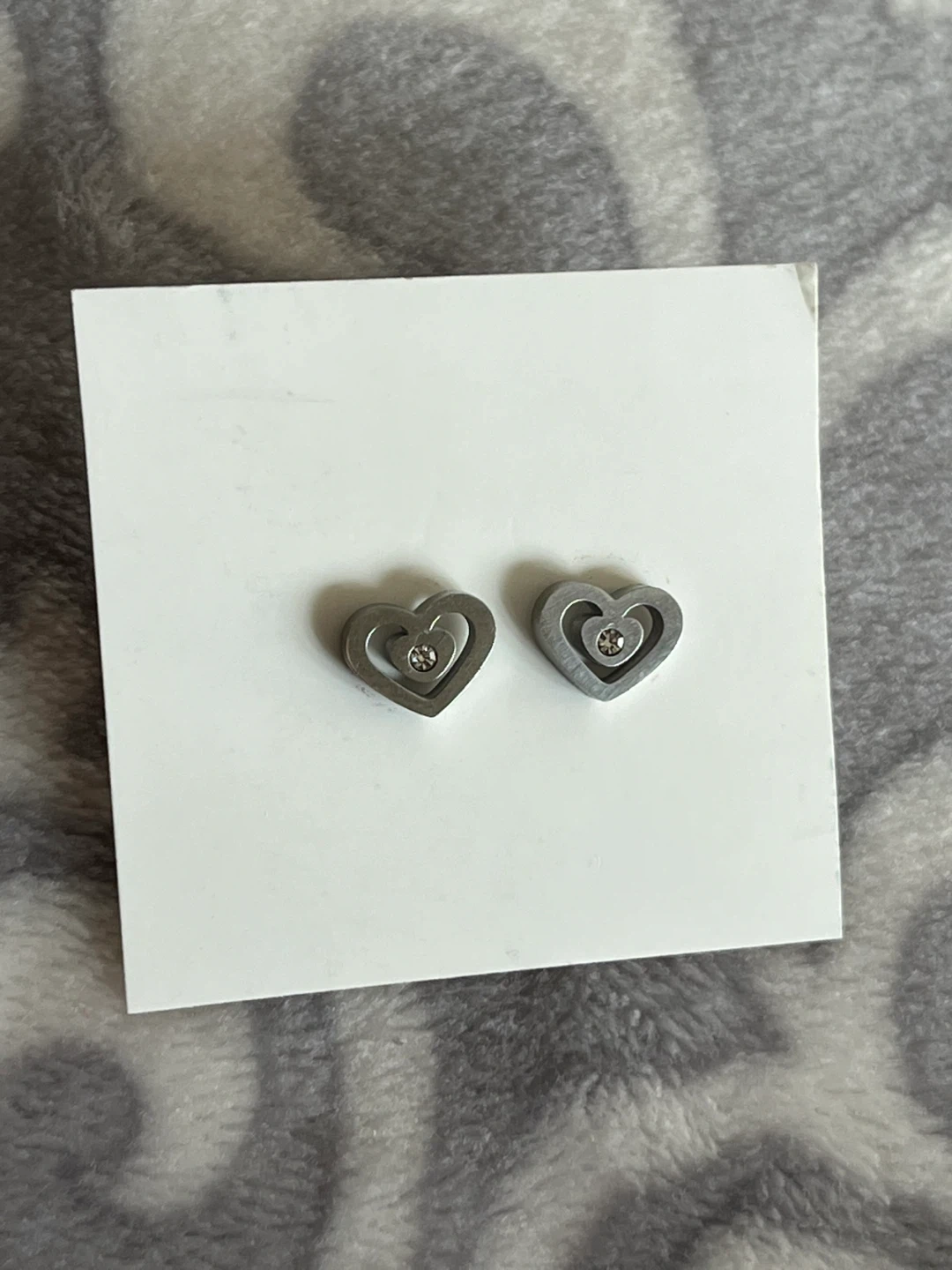 Stainless steel earrings in a unique heart shape with some extra sparkle from the cubic zirconia in the middle. Non tarnish.