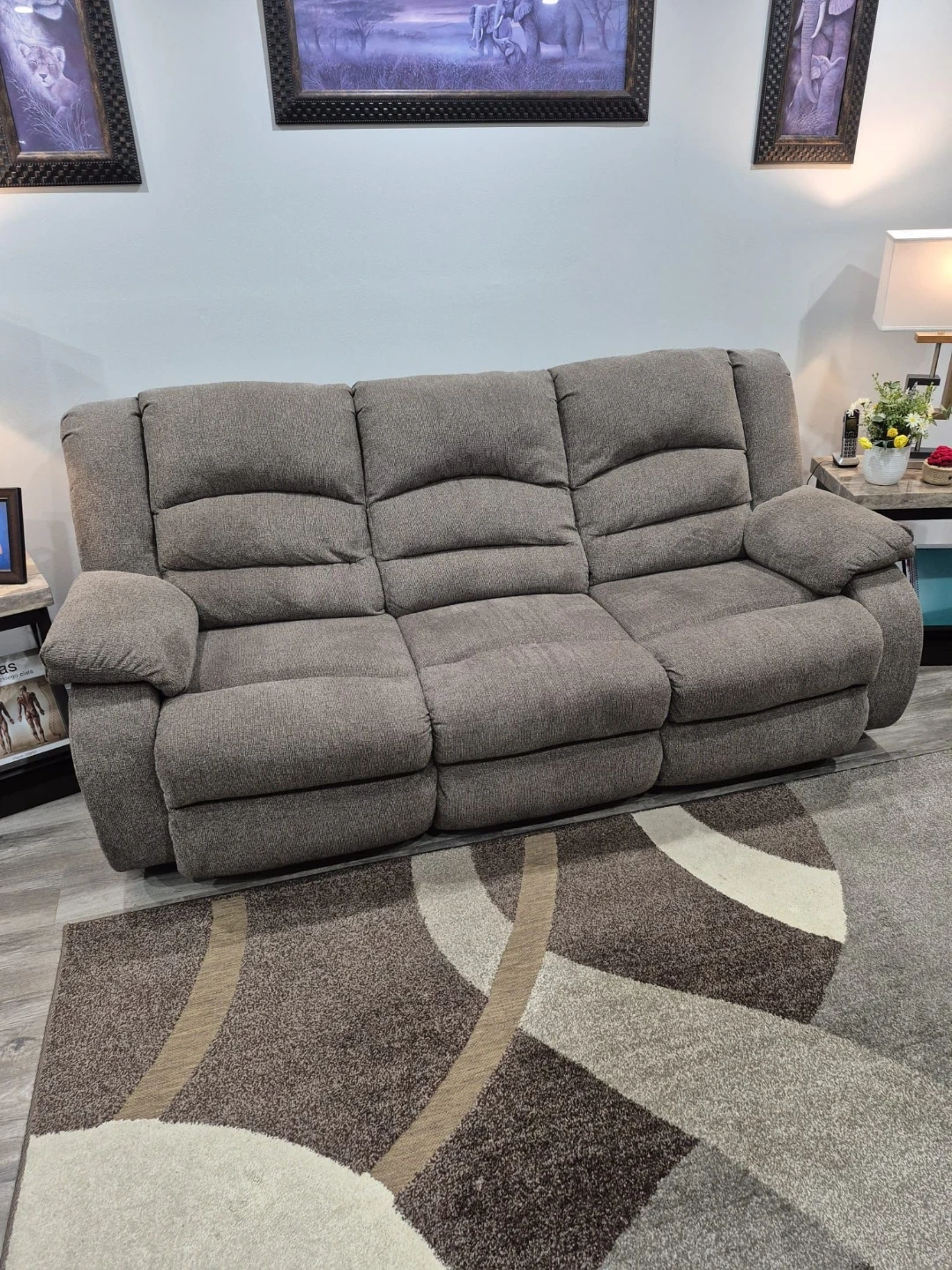 Grey Fabric Reclining Sofa Duo