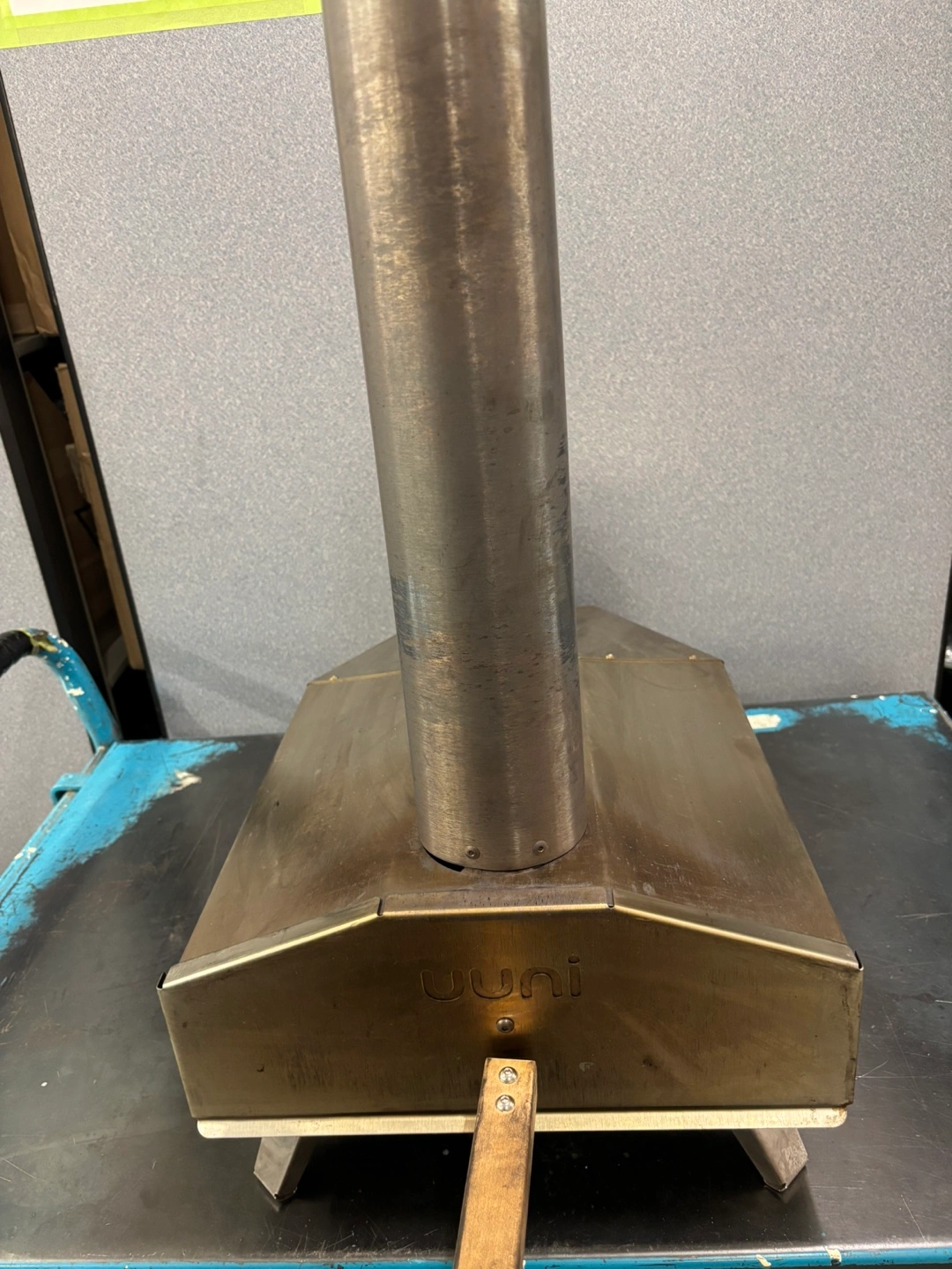 Used Ooni portable pizza oven. Includes carrying bag and accessories. Stainless steel construction.