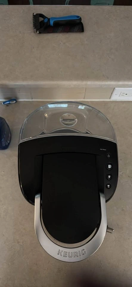 This Keurig coffee maker is in good working condition. It brews a single cup of coffee quickly and easily. Perfect for a morning pick-me-up!