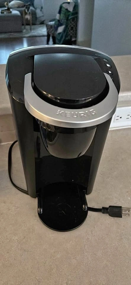 This Keurig coffee maker is in good working condition. It brews a single cup of coffee quickly and easily. Perfect for a morning pick-me-up!