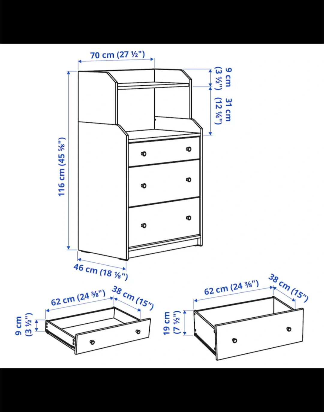 Dresser: 27 1/2" W x 18 1/8" D x 33 1/8" H