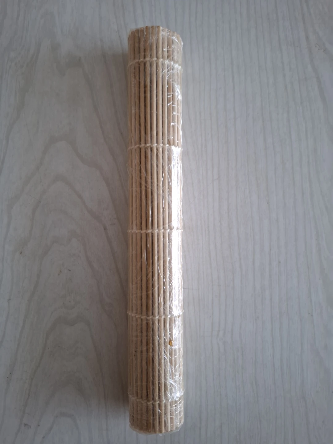This bamboo sushi mat is perfect for making homemade sushi rolls. It's made of natural bamboo and is tied together with string. Simply unroll it to use and roll it back up for easy storage. It's great for sushi night at home!
