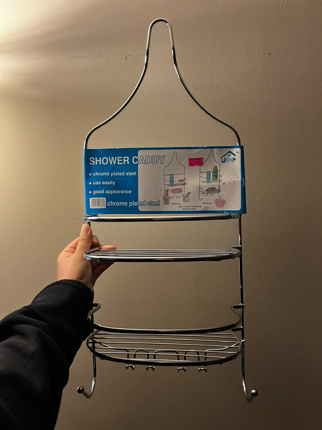 Selling a shower caddy made of chrome plated steel! It's designed for easy use and has a good appearance. The dimensions are L23.5 x W11 x H54.5 cm
