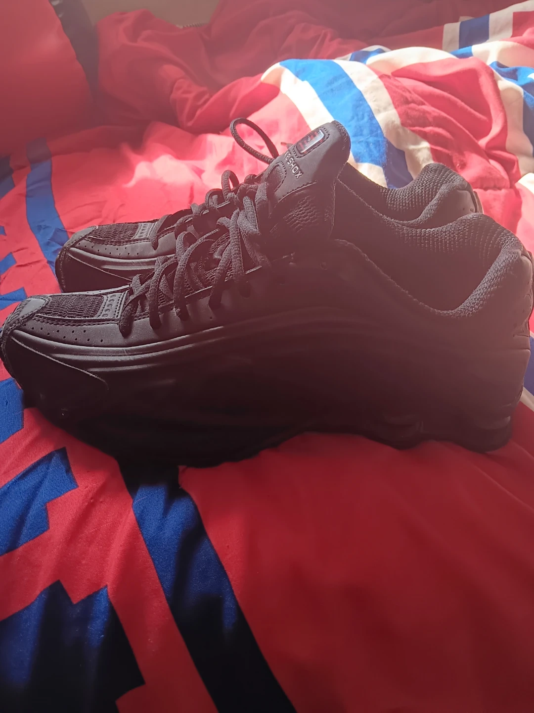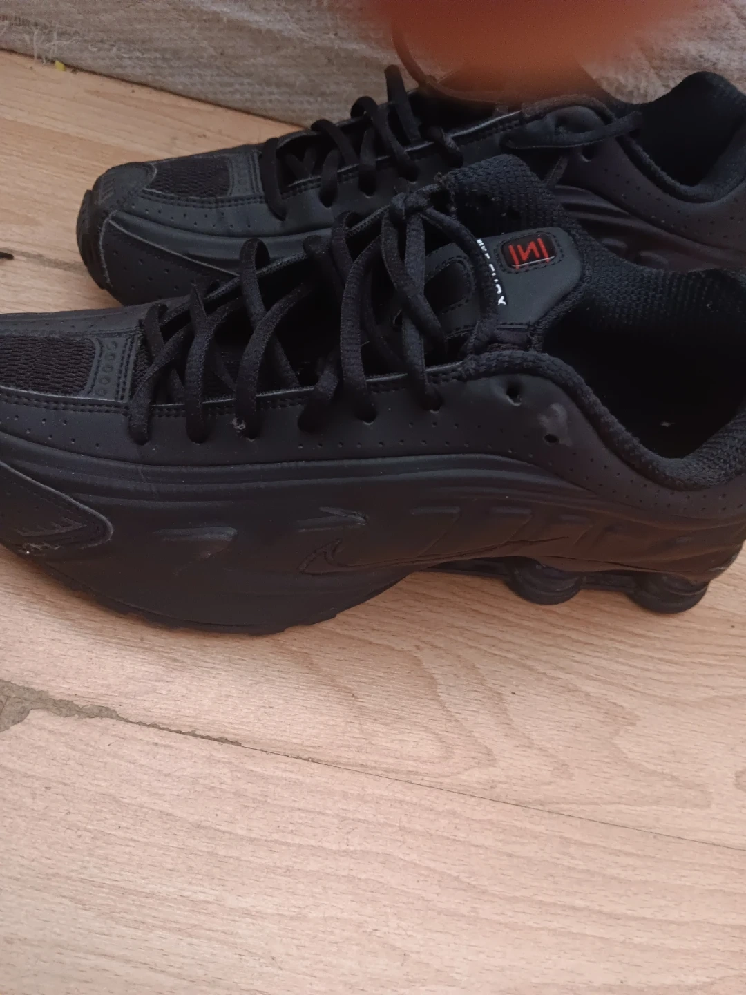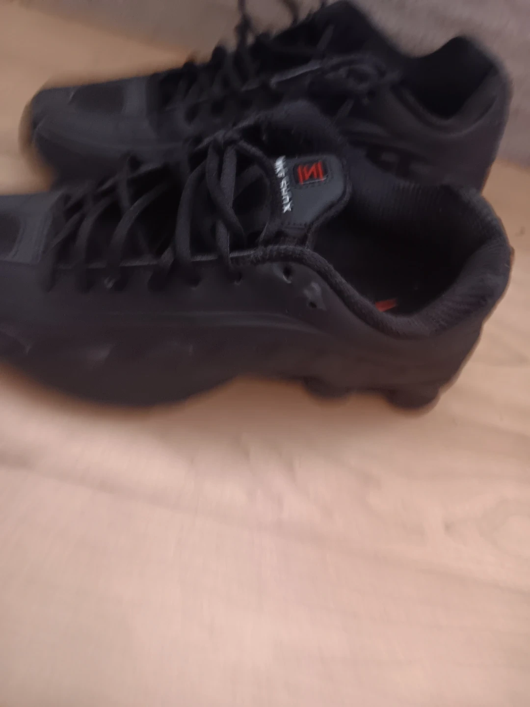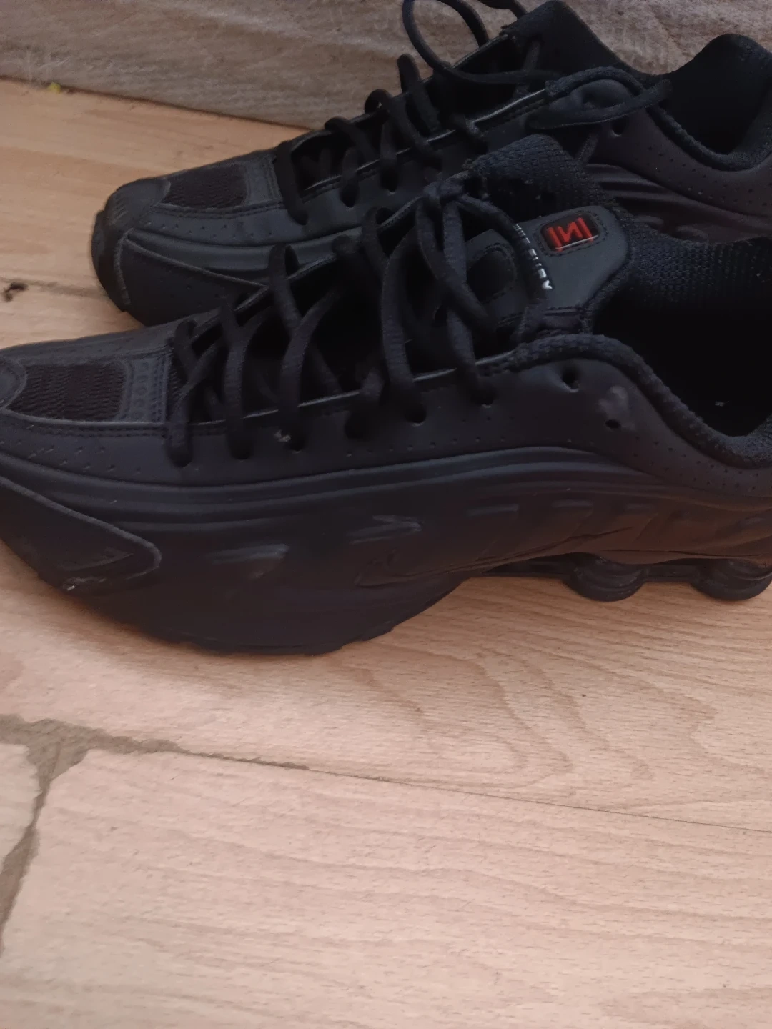 Black Nike Shox NZ men's running shoes. These sneakers offer a sporty look and comfortable feel. They're great for everyday wear or light athletic activities.
