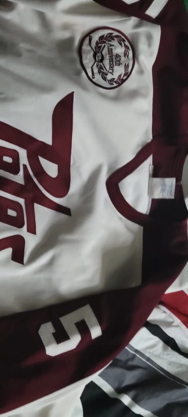 White and burgundy CCM hockey jersey with "MURPHY" and number "5" on the back. Features a 40th Anniversary patch on the chest.