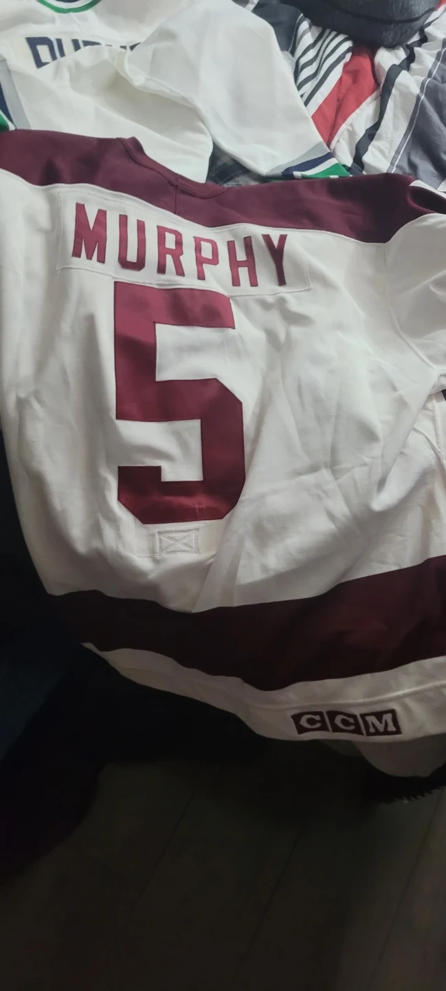 White and burgundy CCM hockey jersey with "MURPHY" and number "5" on the back. Features a 40th Anniversary patch on the chest.