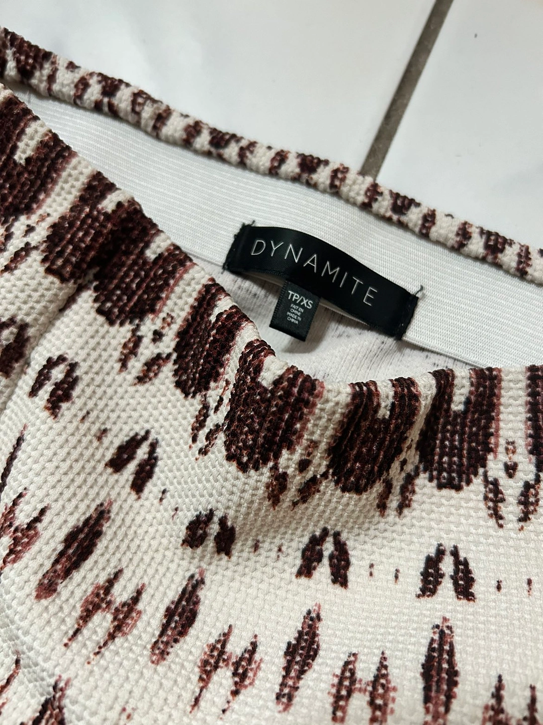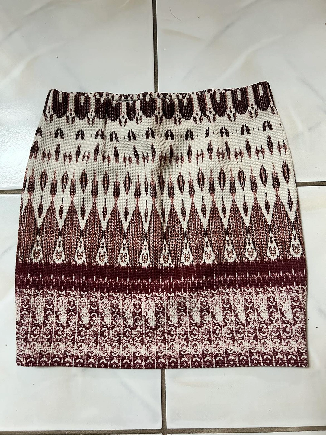 4. White/burgundy kaleidoscope-like pattern skirt. Stretchy band for comfort