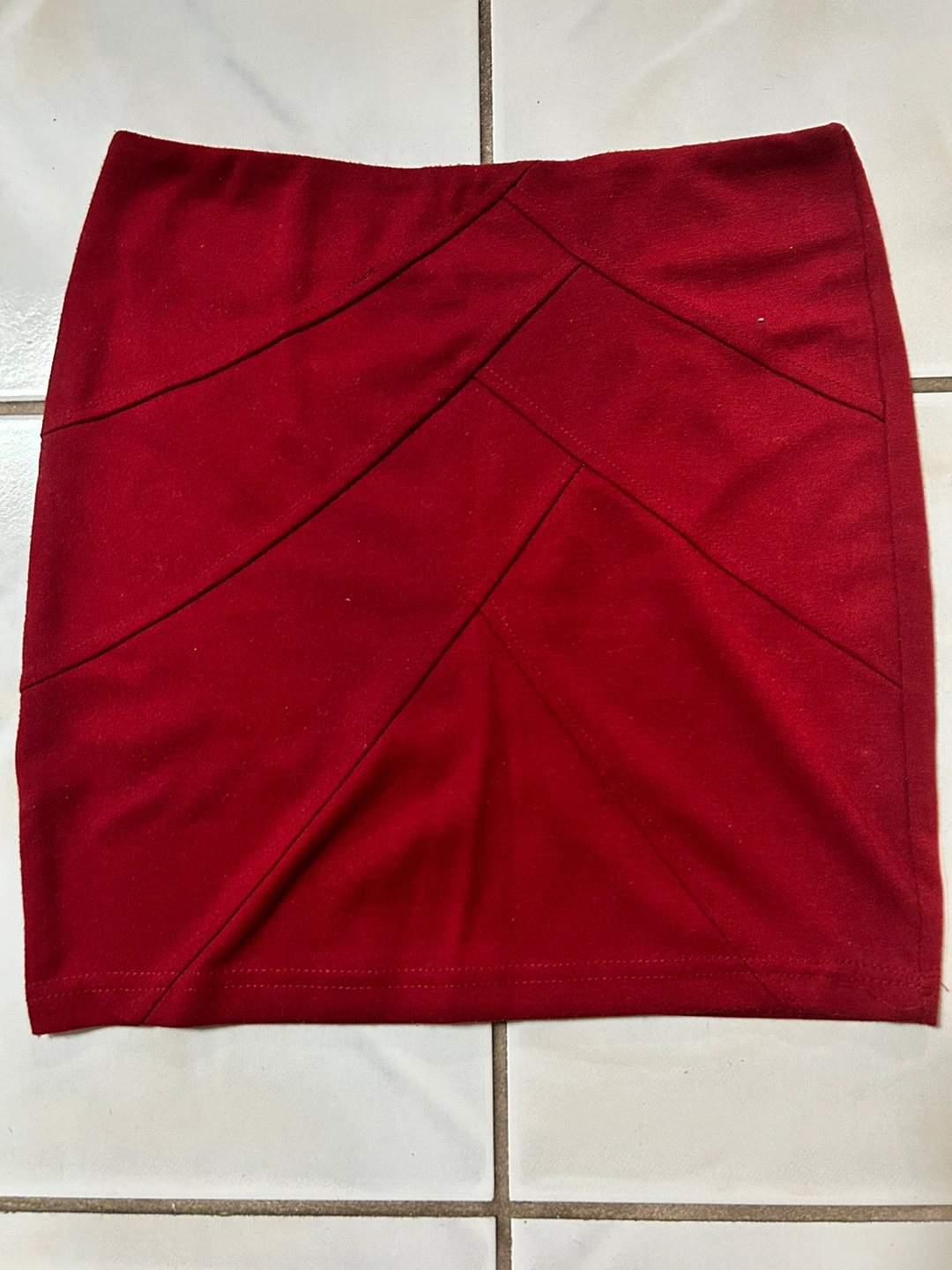 1. Red patterned skirt, stretchy and hugs you in the right places