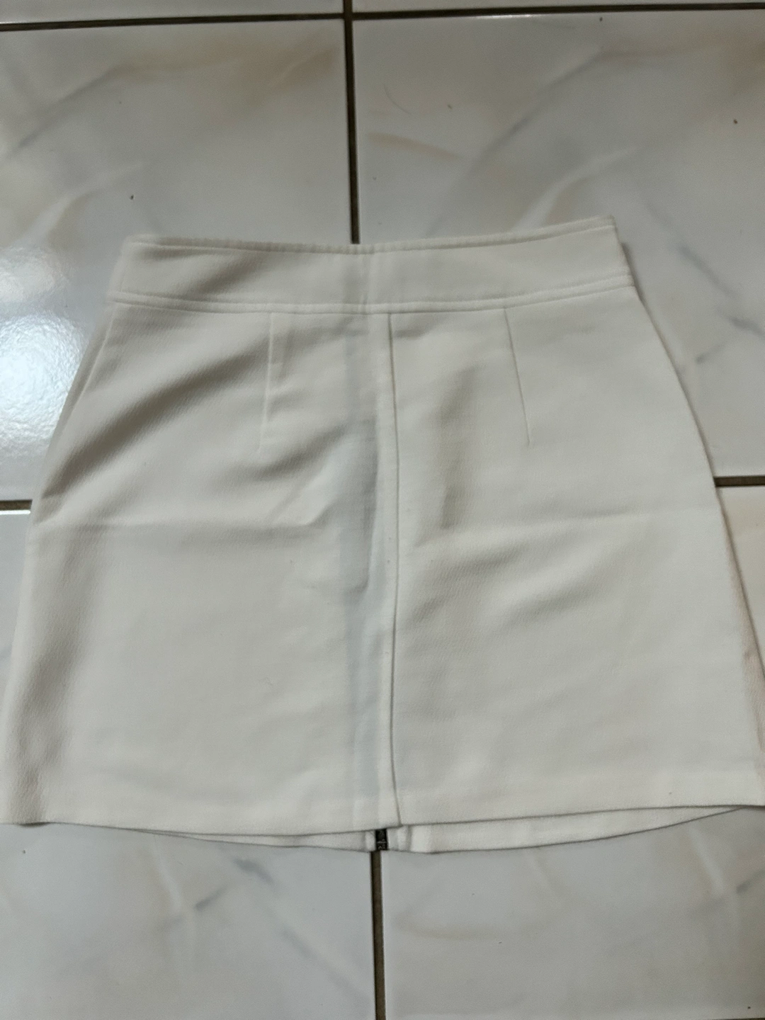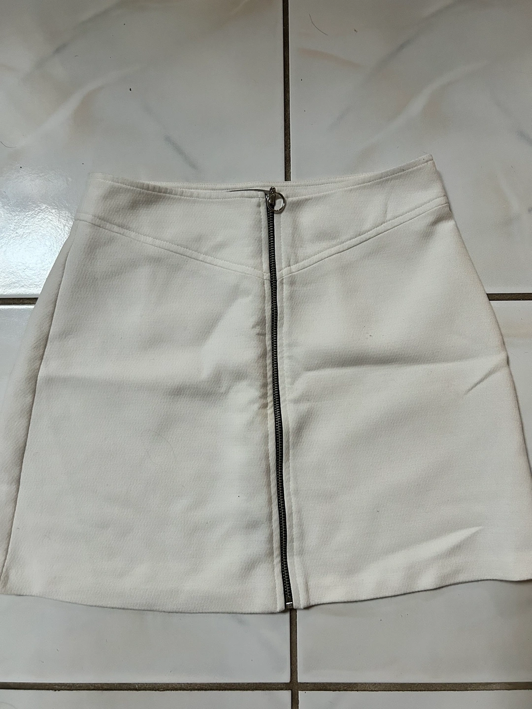 2. White zipper skirt. Zipper goes all the way through the front. Less stretchy but still comfortable
