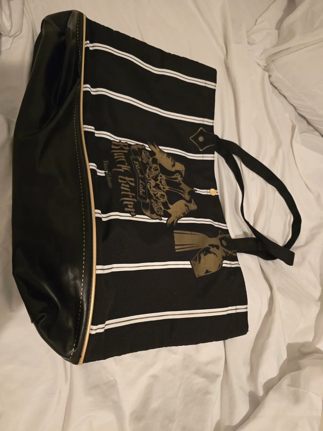 Japan bag Black Butler Black Label designed by YANA TOBOSO tote bag. It's in great condition and perfect for carrying your essentials! It is great for any Gender. The bag features a striking design with the Black Butler logo and imagery. It has a spacious interior, making it ideal for everyday use. SELLS up to $100.plus. Just No tag.thats why it's a lower price.