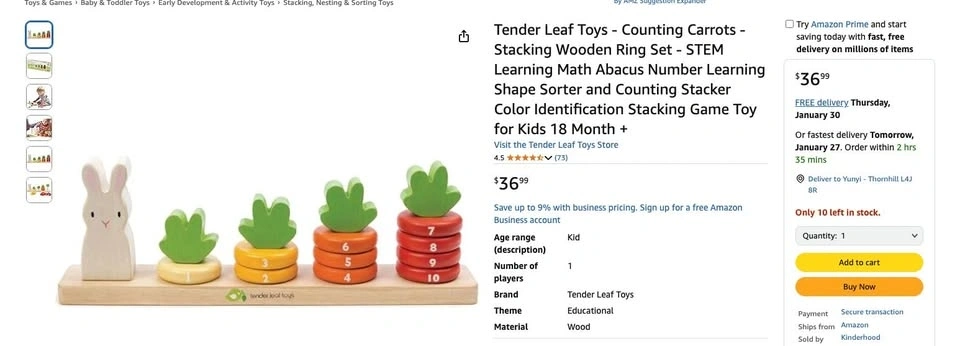 Buy & SellTender Leaf Toys Counting CarrotsTender Leaf Toys Counting Carrots$16In great condition!WHERE TO MEETCheck LocationView MapSELLERAnnRural Vaughan100 reviews0 chats·1 favorites·6 viewsSEND CHAT TO SELLERHi Ann! I’m interested in your listing.Hi Ann! I’m interested in your listing.Get the Karrot app to chatSign In to chat
