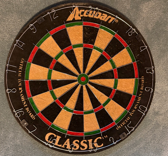 Used dart board in good condition. Evening and weekend pick up only. Closest major intersection is Hurontario Street and Central Parkway in Mississauga. For sale by owner.