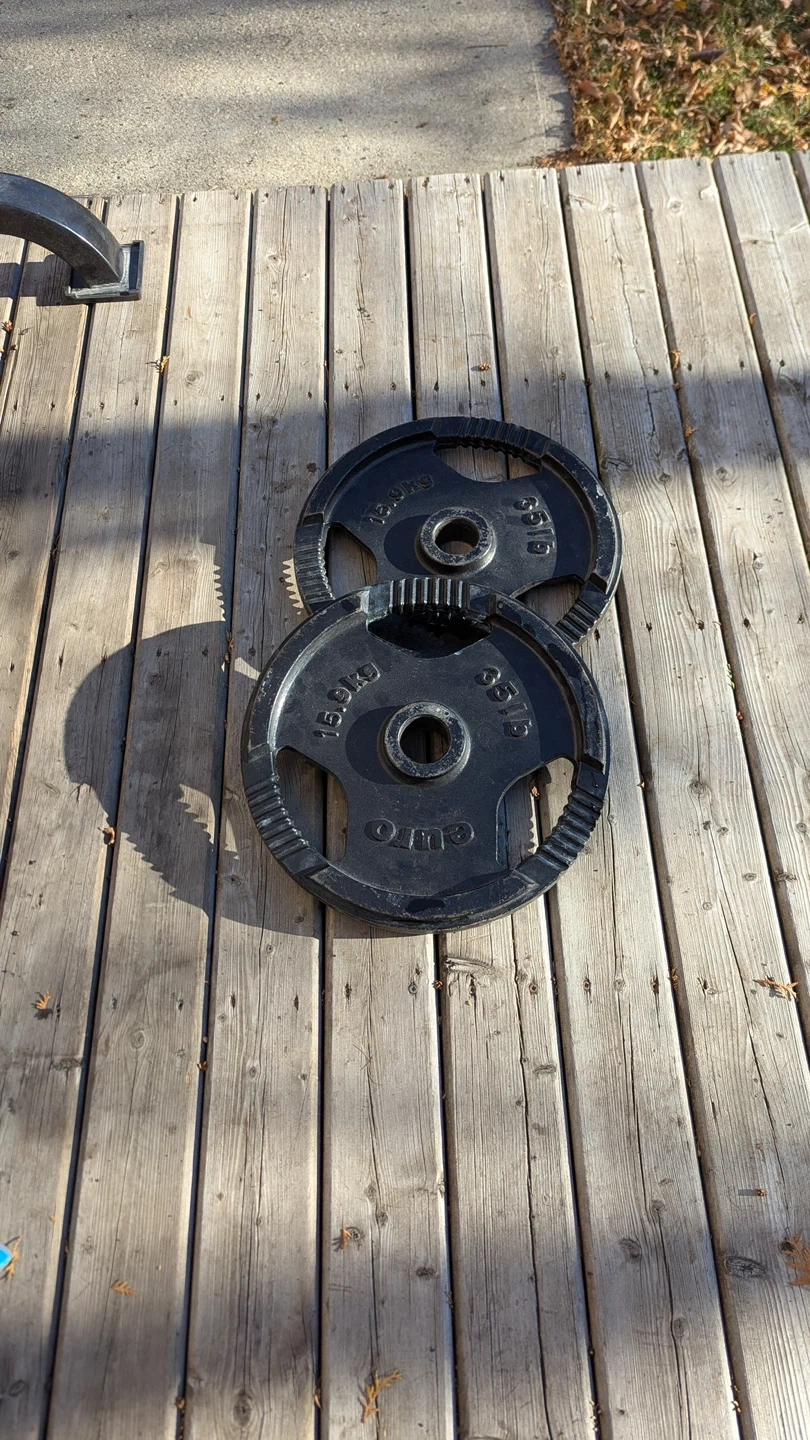 15Hex bar - 80lbs $200 OBO 45lbs barbell $200 OBO 2 x Olma weight plates, each weighing 35 lbs (15.9 kg) both for $75 OBO Flat bench $75 OBO Slant board $25 Take it all for $500 Pick up in Sherwood park