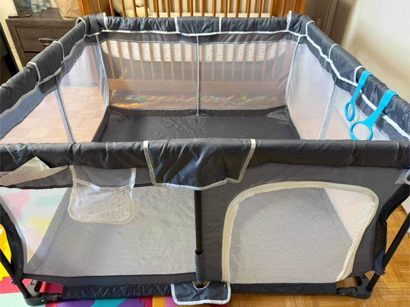 60Selling a large baby playpen from Gymax! It comes with a mat and provides a safe and fun play area for your little one. Originally bought for $169.99.
