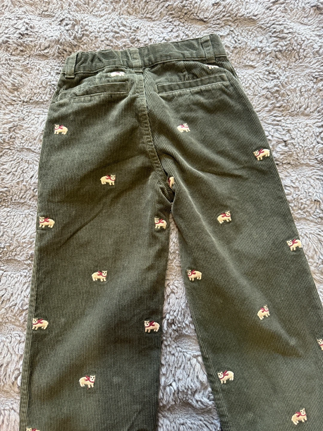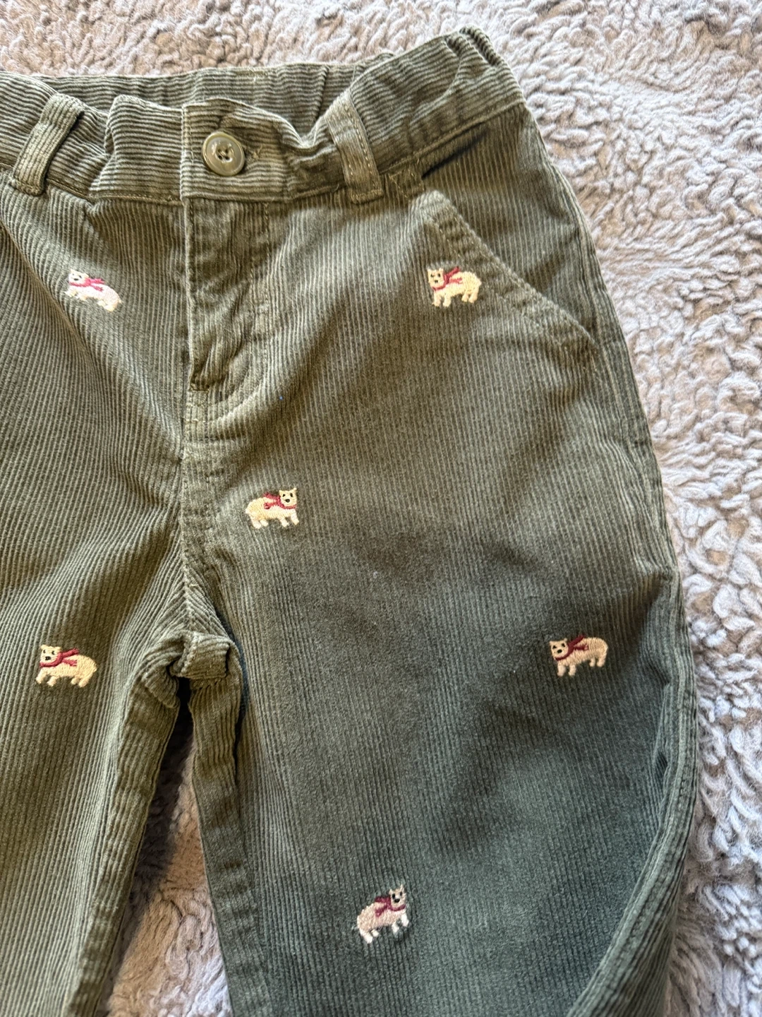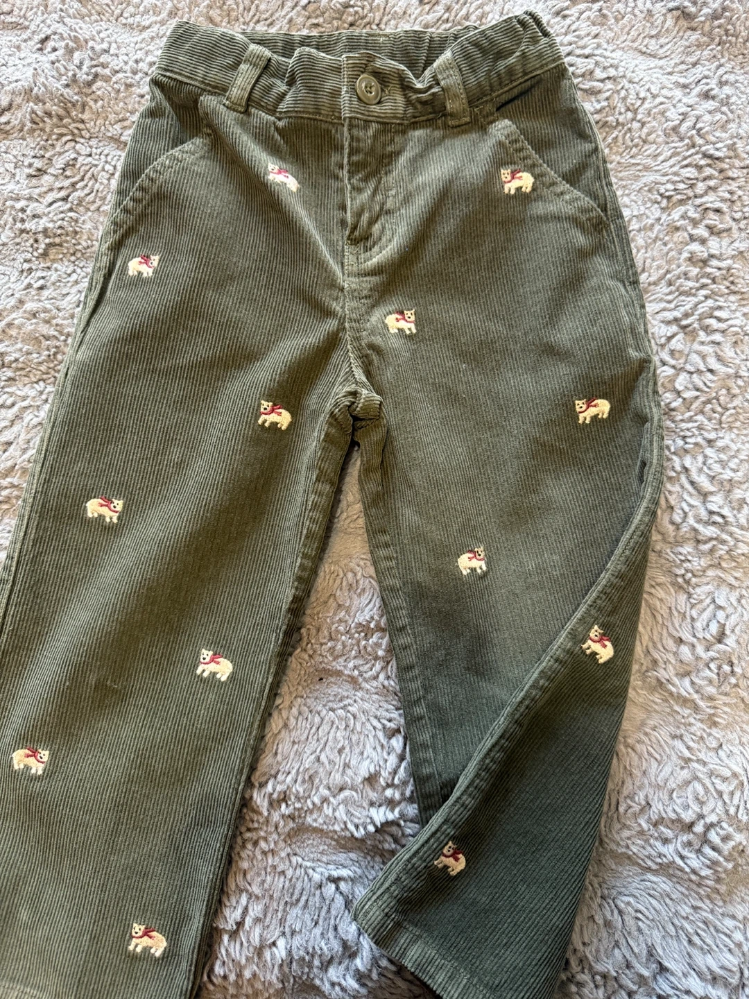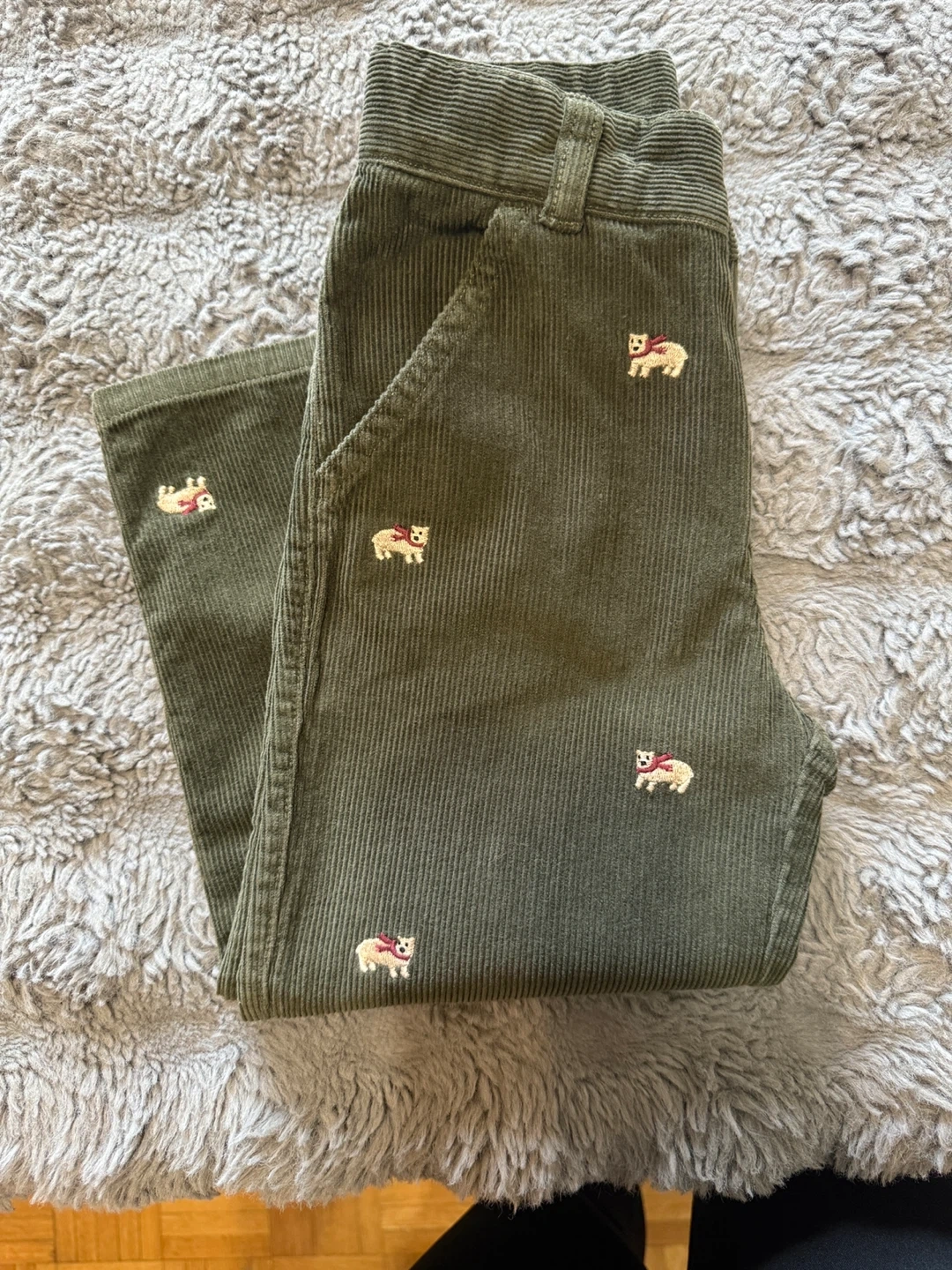 157These adorable Gymboree corduroy pants are in great condition and ready for a new home! They're a size 3T and made from 100% cotton, making them super comfy for your little one. The olive green colour is perfect for fall, and the cute bear embroidery adds a fun touch!