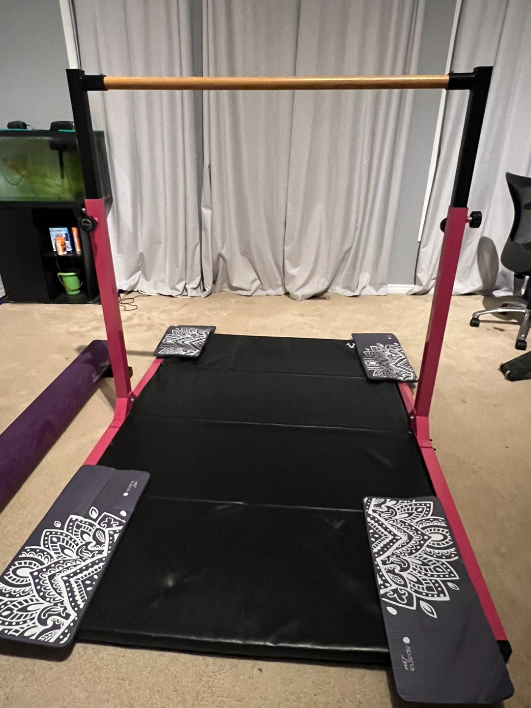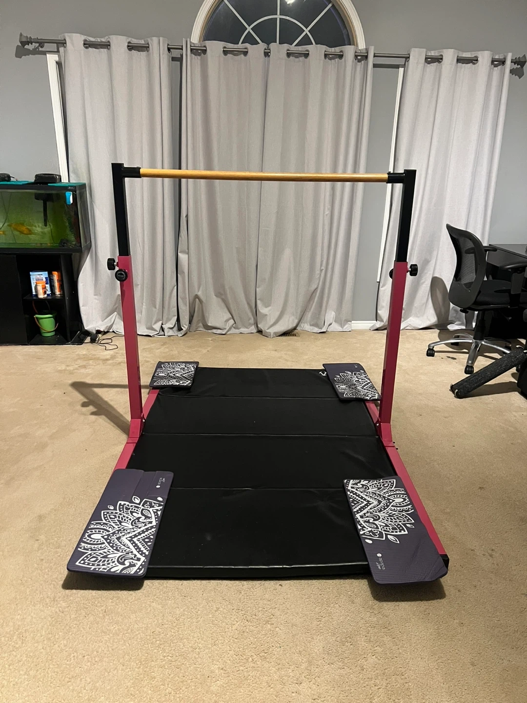 15Selling a gymnastics bar with a mat! It's in great shape and perfect for practicing at home. The mat provides a safe and comfortable surface for training. Great for kids and adults!